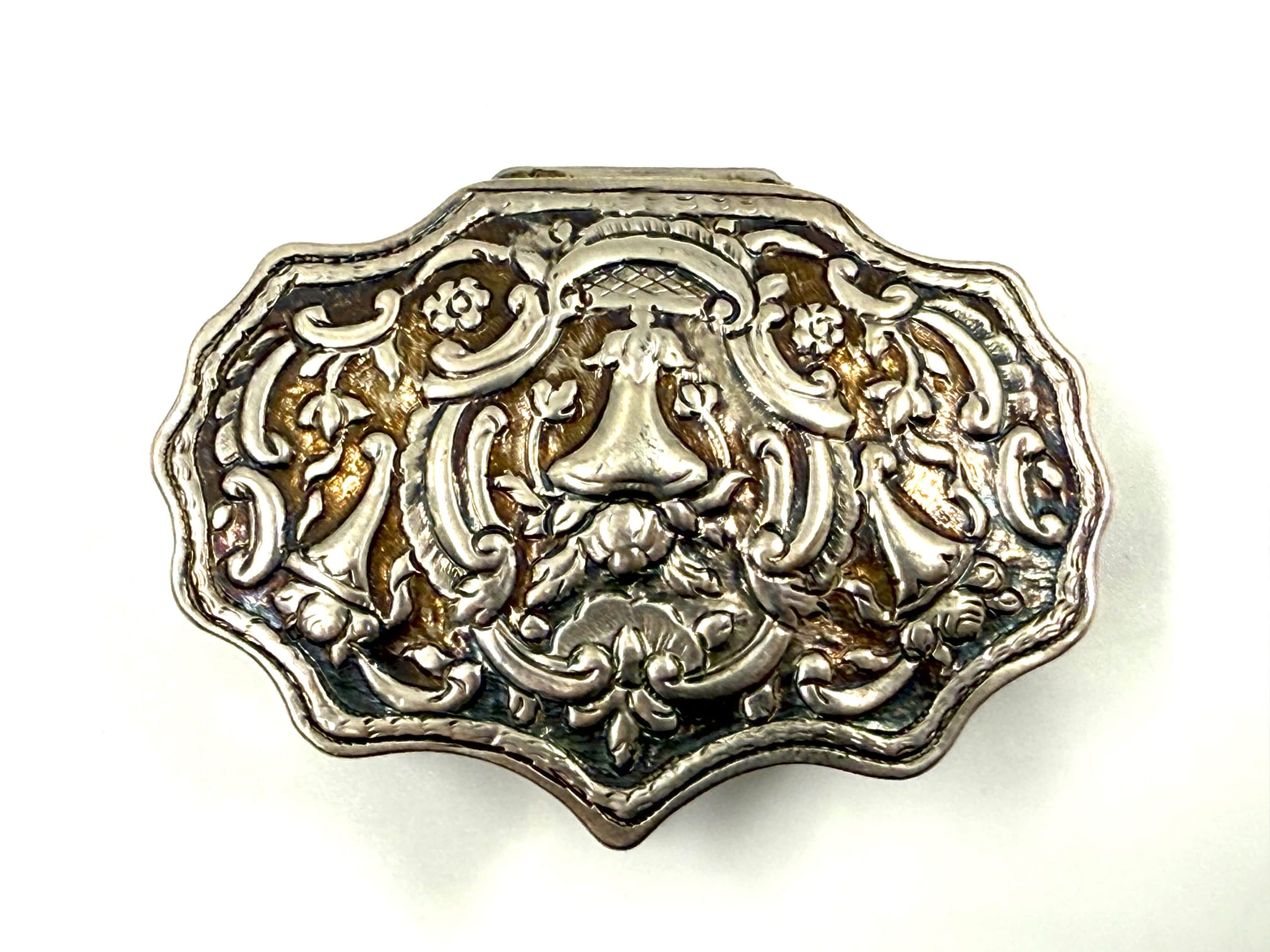 Ασημένια ταμπακοθήκη με ίχνη επιχρύσωσης.