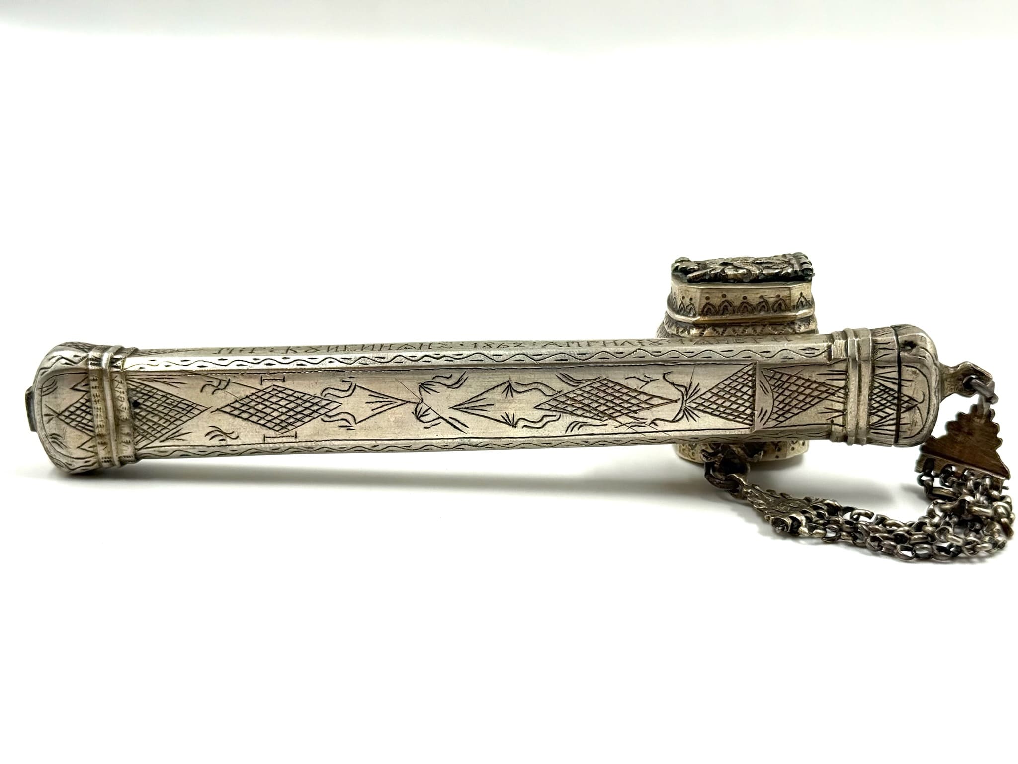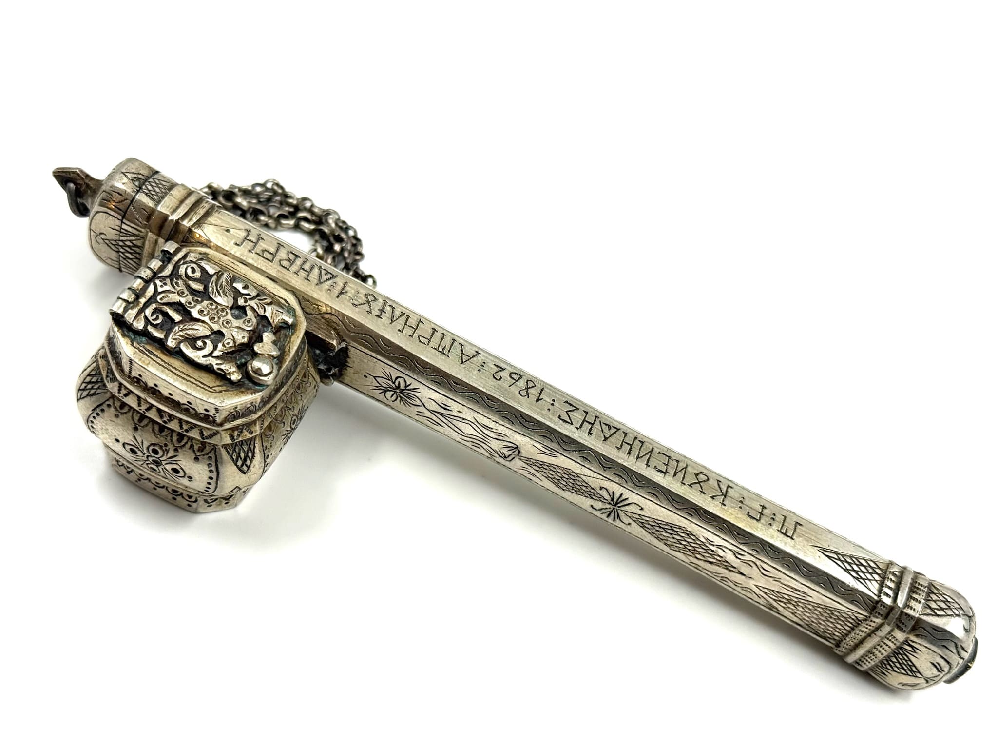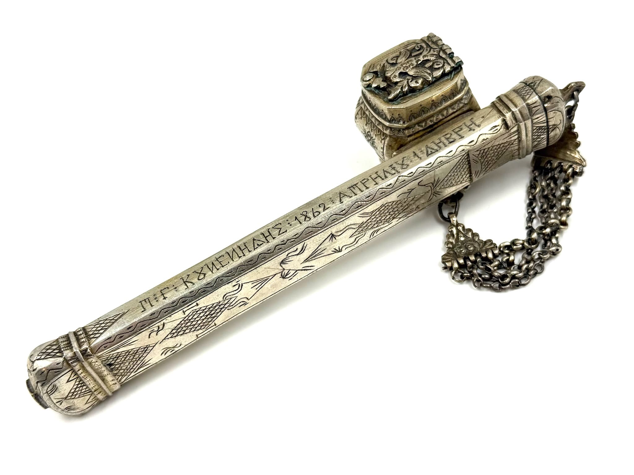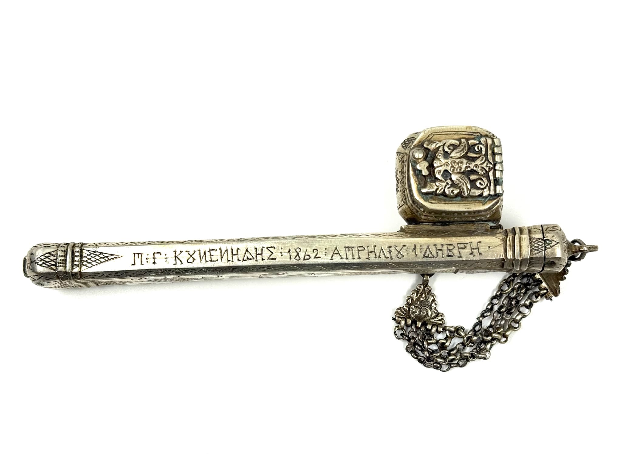 Ασημένιο καλαμάρι με εγχάρακτη ημερομηνία 1862 και ονοματεπώνυμο.