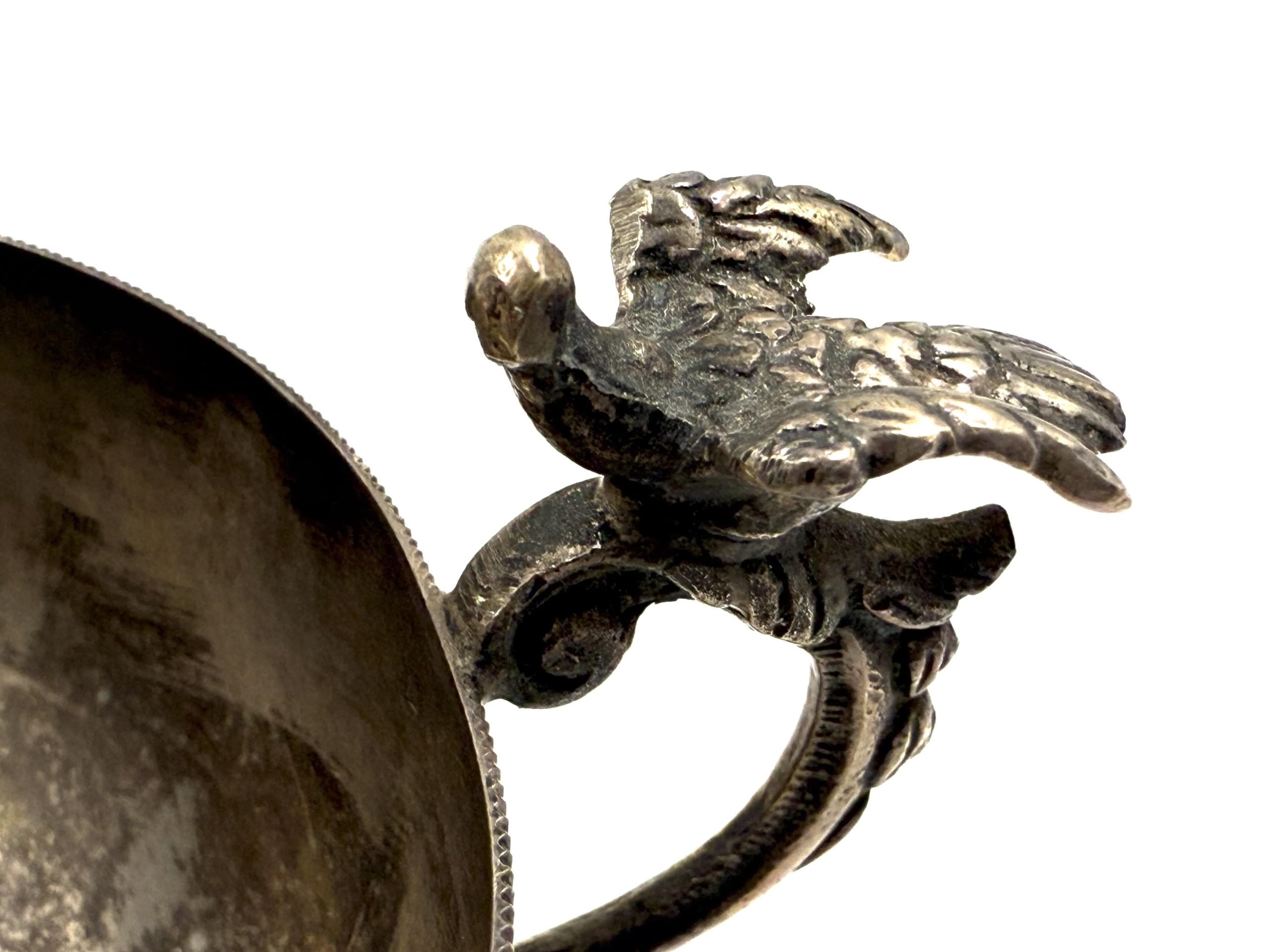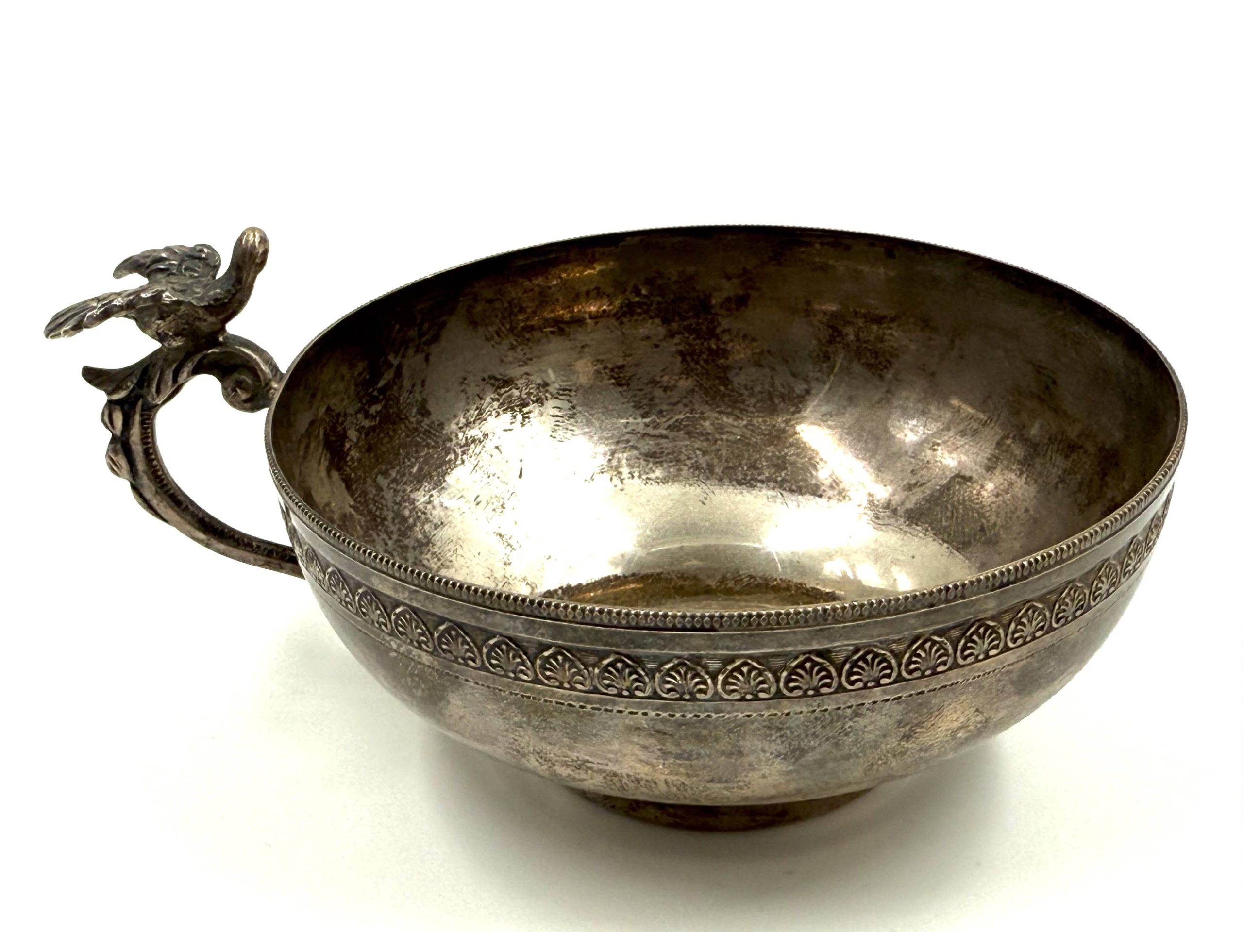 Ασημένιο τάσι-κούπα με σφραγίδα στη βάση.