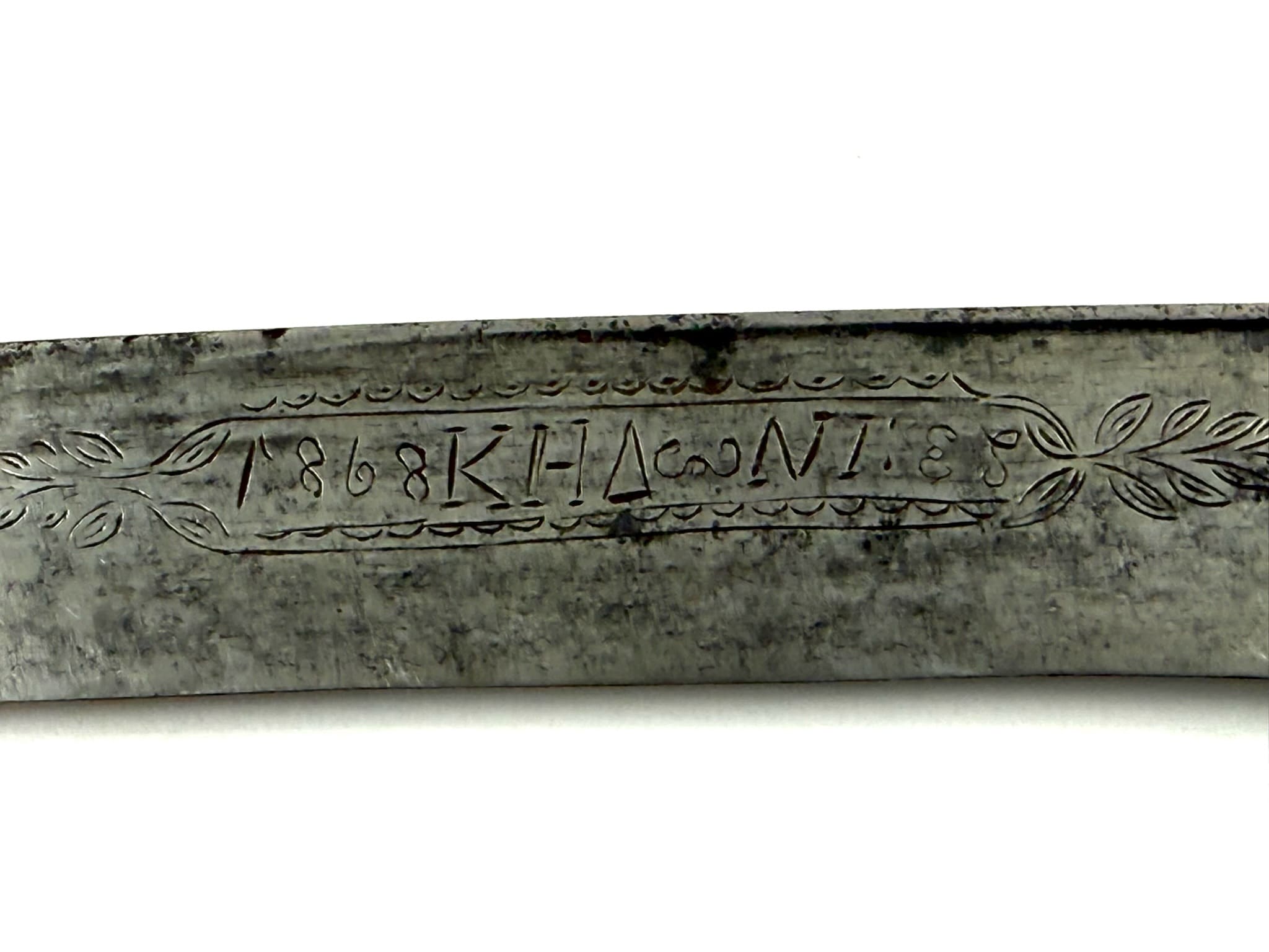 Γιαταγανομάχαιρο με κοκκάλινη λαβή και επιγραφή στην λάμα (“1868 Κηδωνίες”)