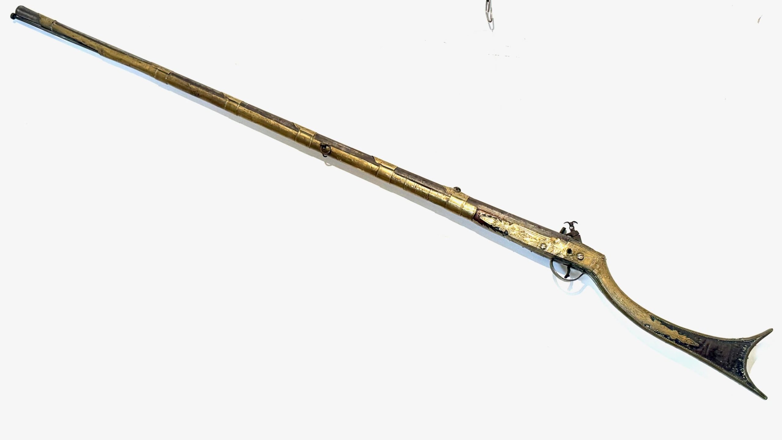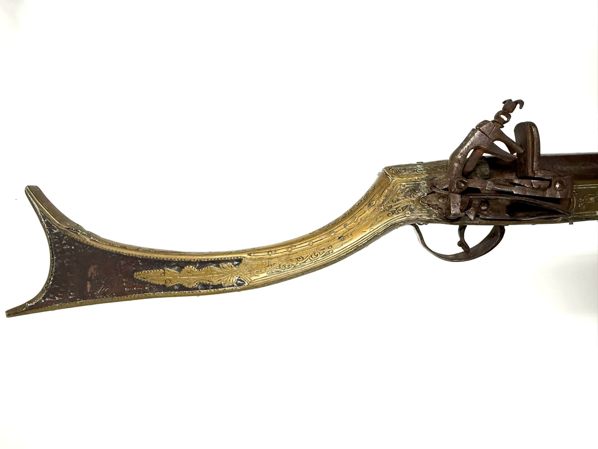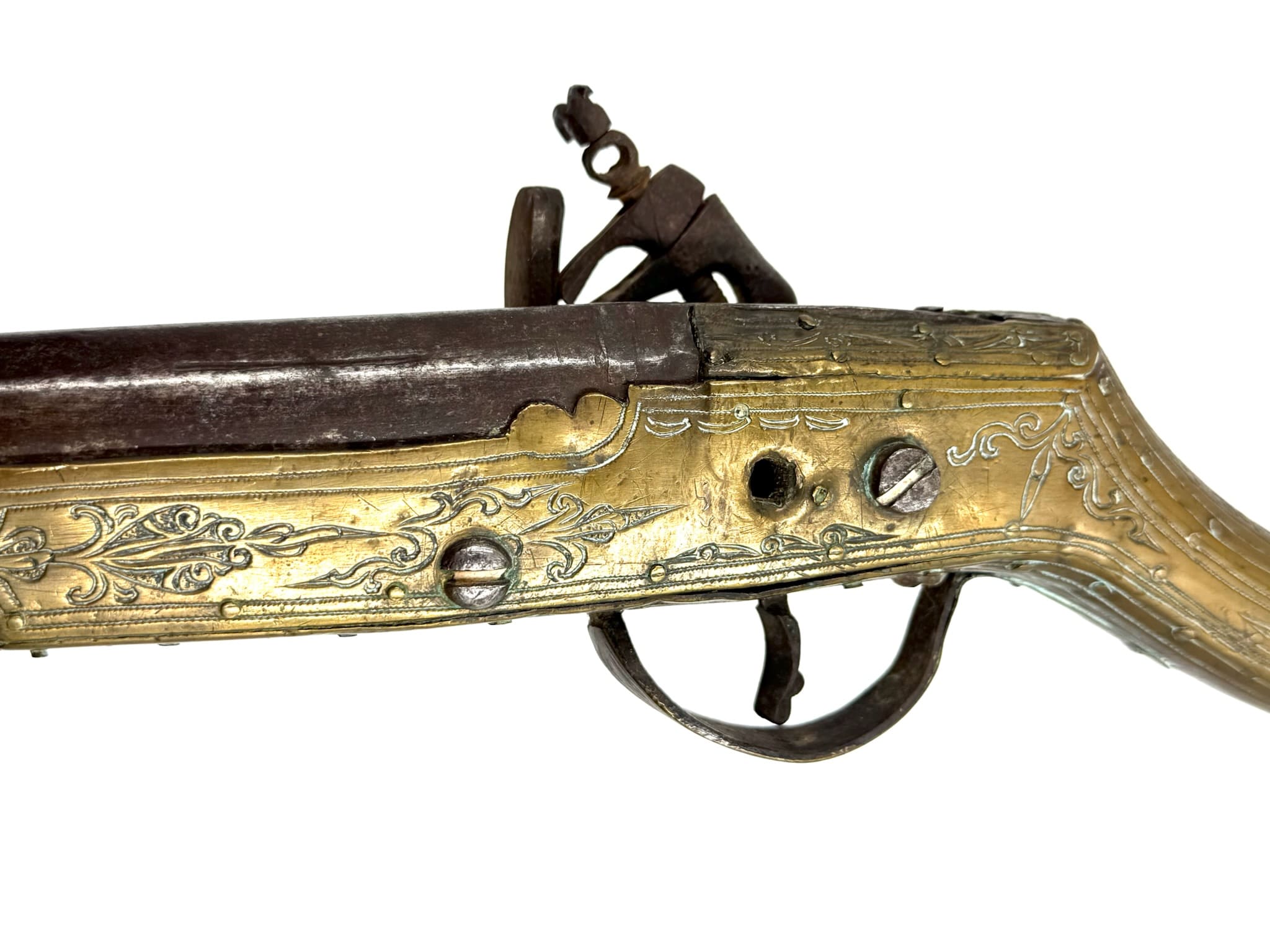 Μπρούτζινο Ελληνικό καριοφίλι με εγχάρακτη διακόσμηση και μικελέ μηχανισμό.