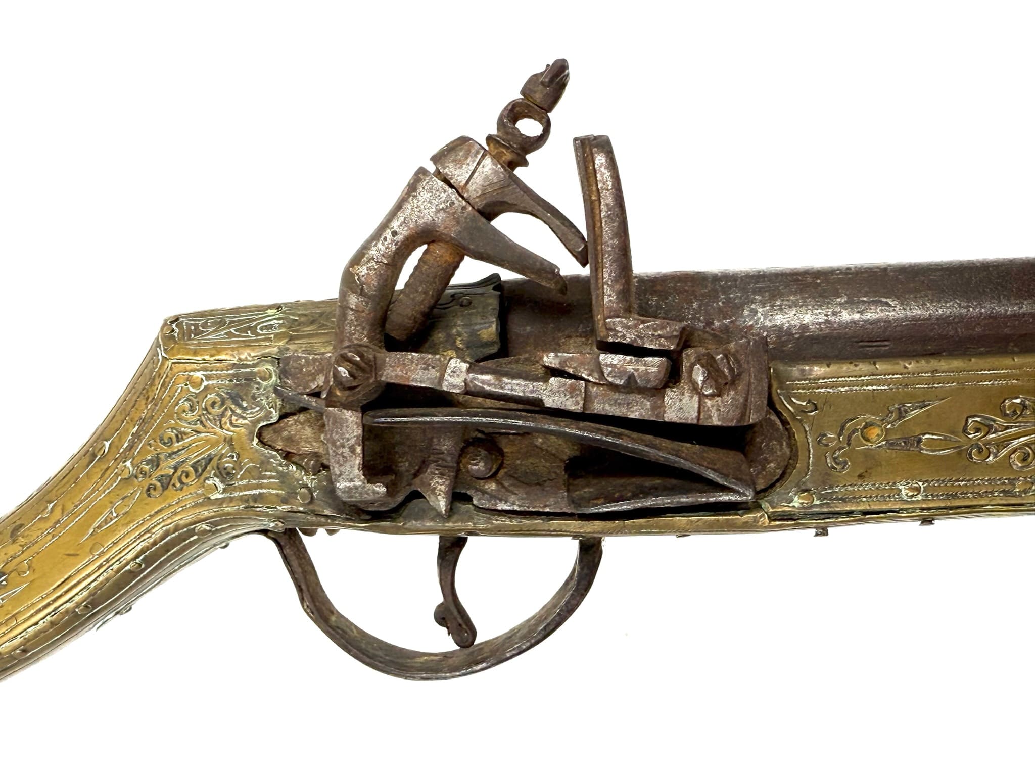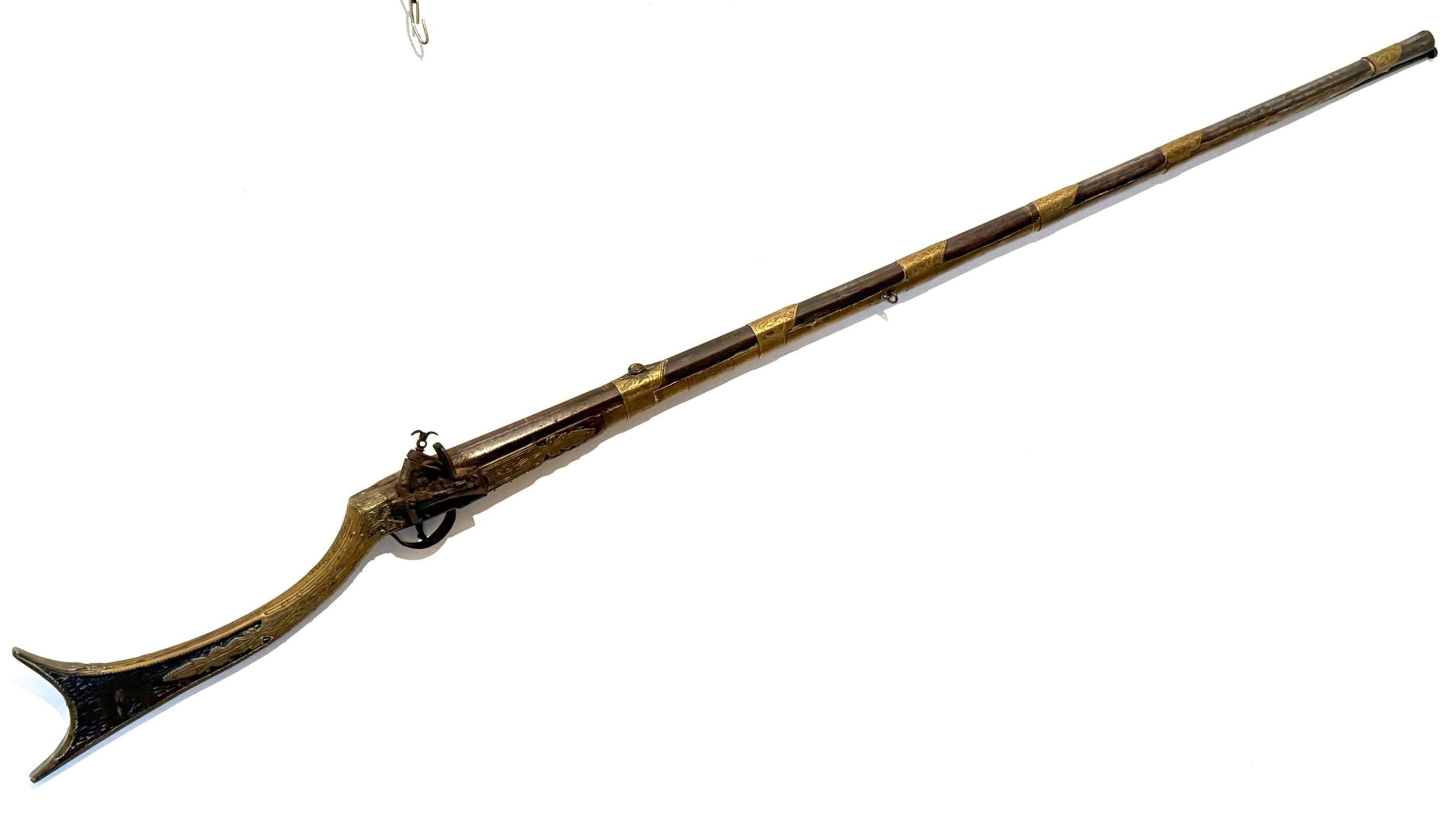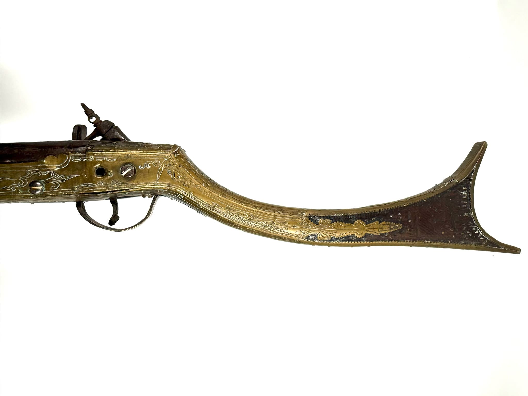 Μπρούτζινο Ελληνικό καριοφίλι με εγχάρακτη διακόσμηση και μικελέ μηχανισμό.