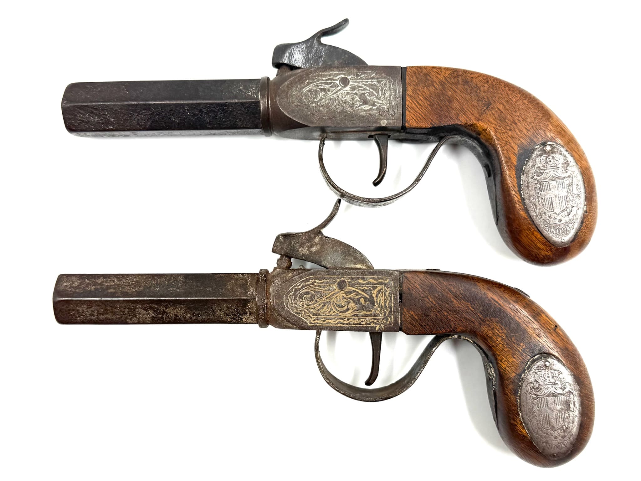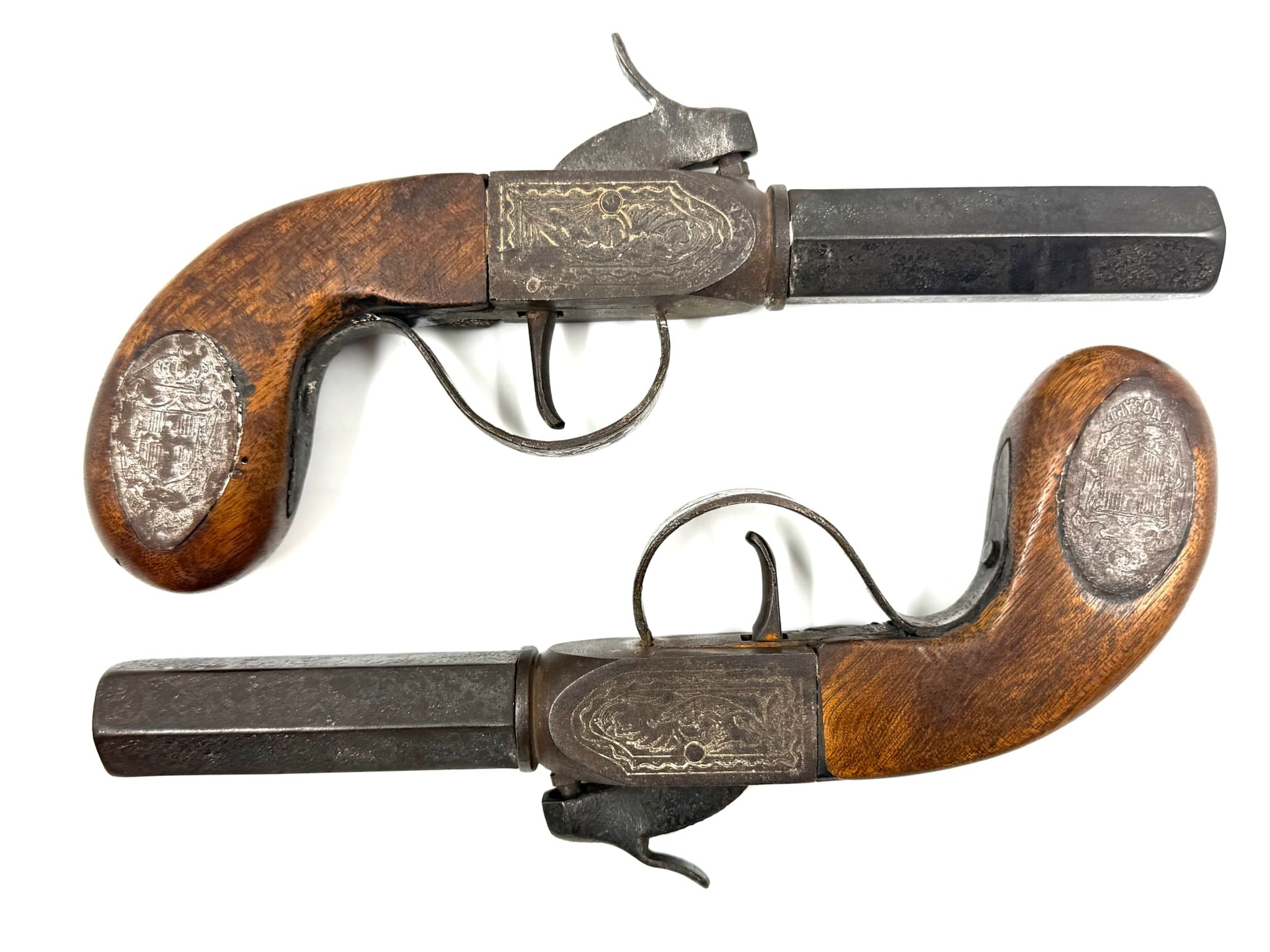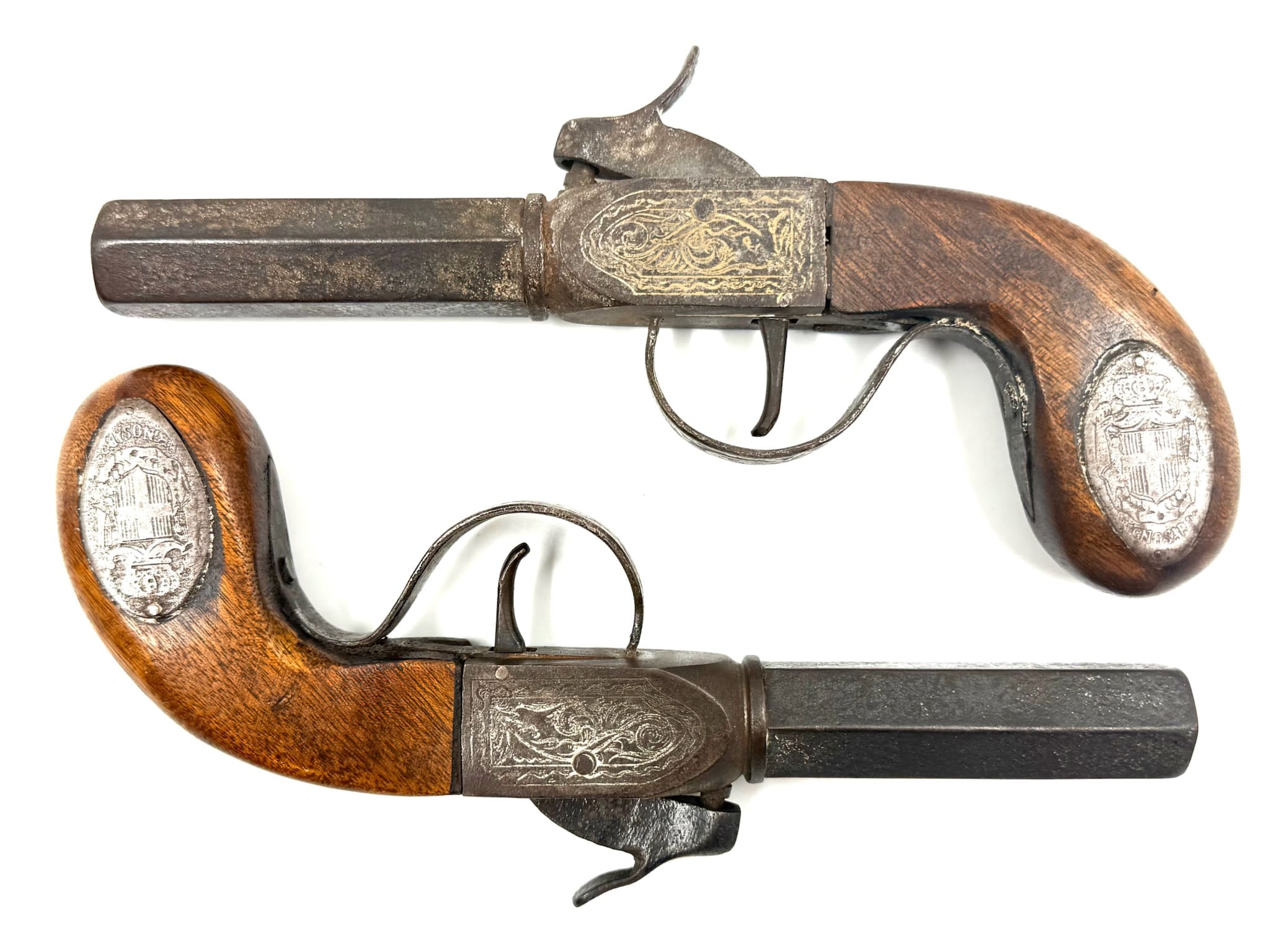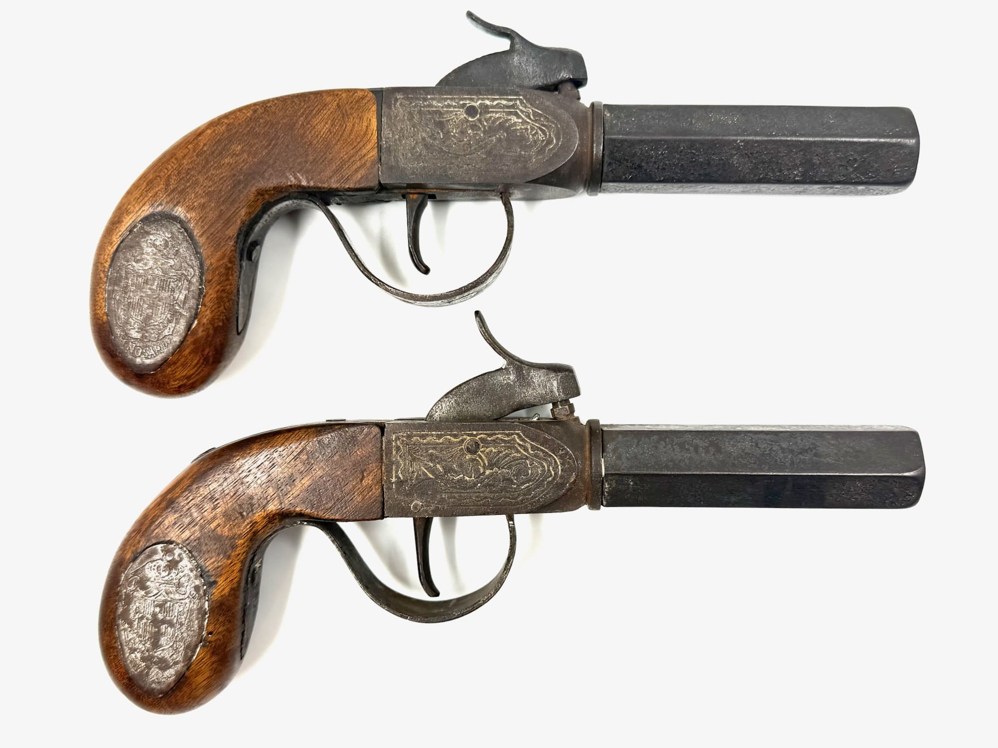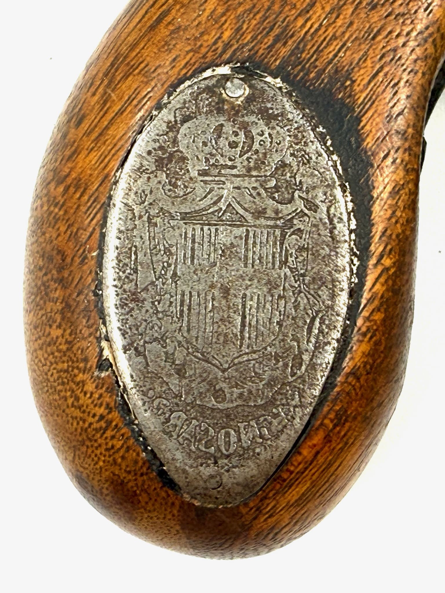 Ευρωπαϊκά πιστόλια καψυλίου με πολυγωνικές κάννες και το οικόσημο της Σαβοϊας στην λαβή με την επιγραφή ”Βασίλειο της Σαρδηνίας”.