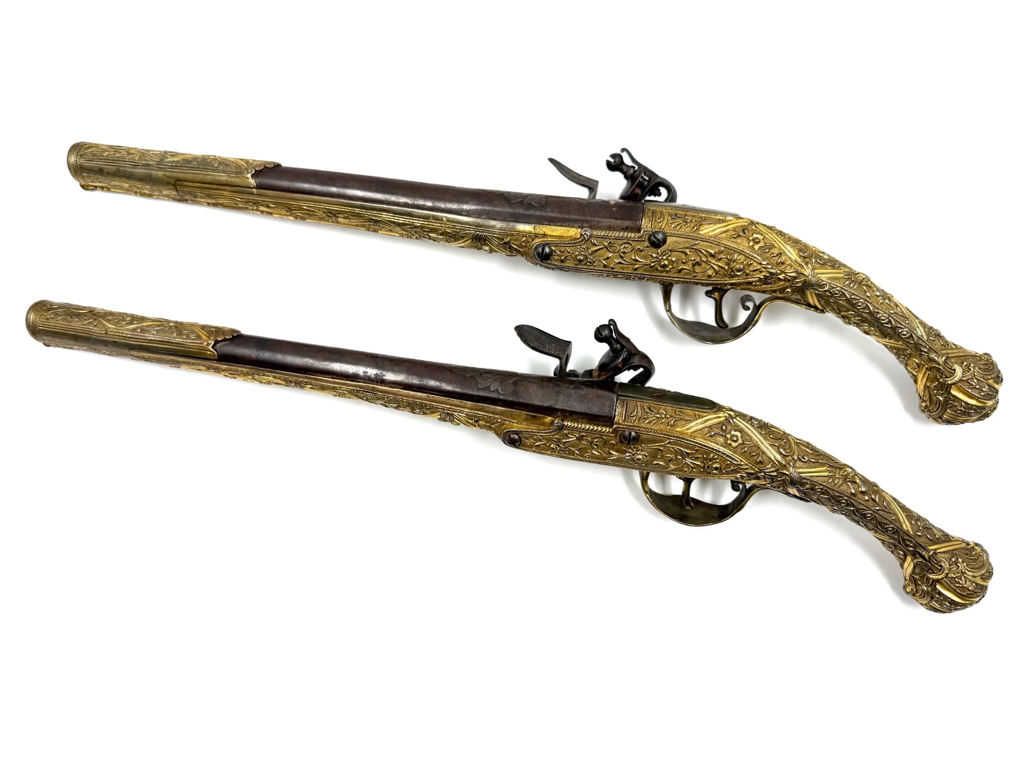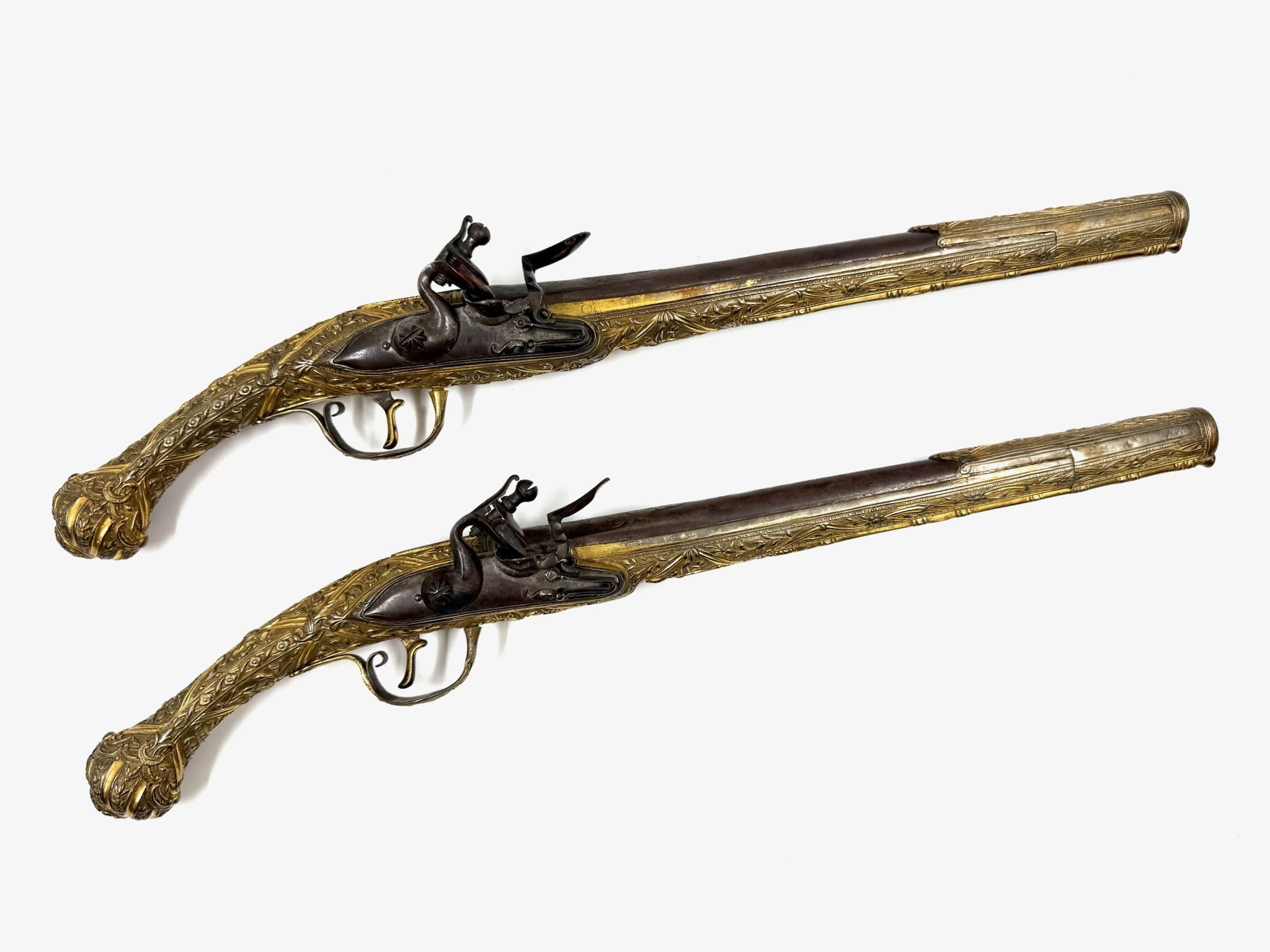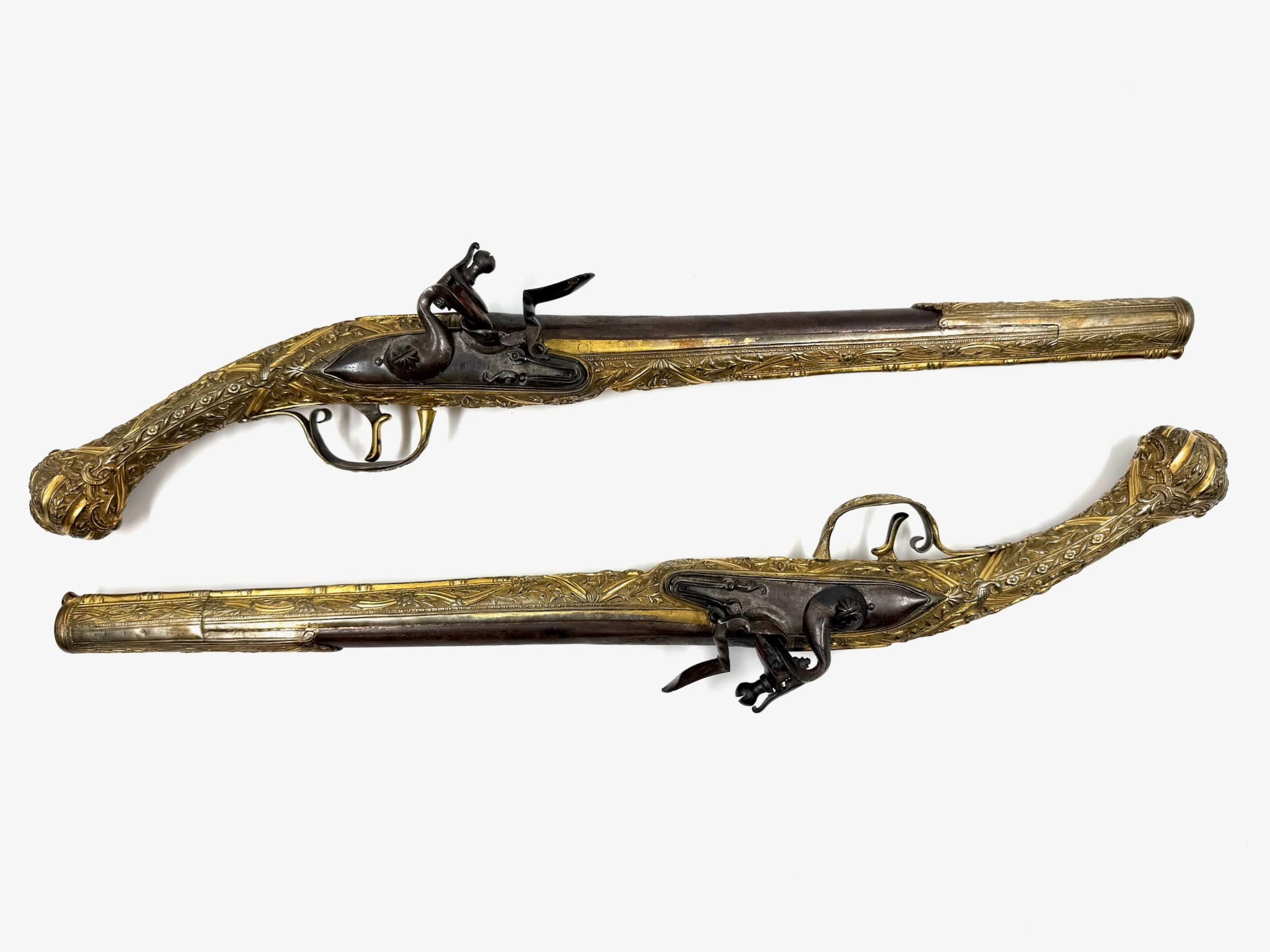 Ασημένιο επίχρυσο Ελληνικό ζευγάρι πιστόλες.