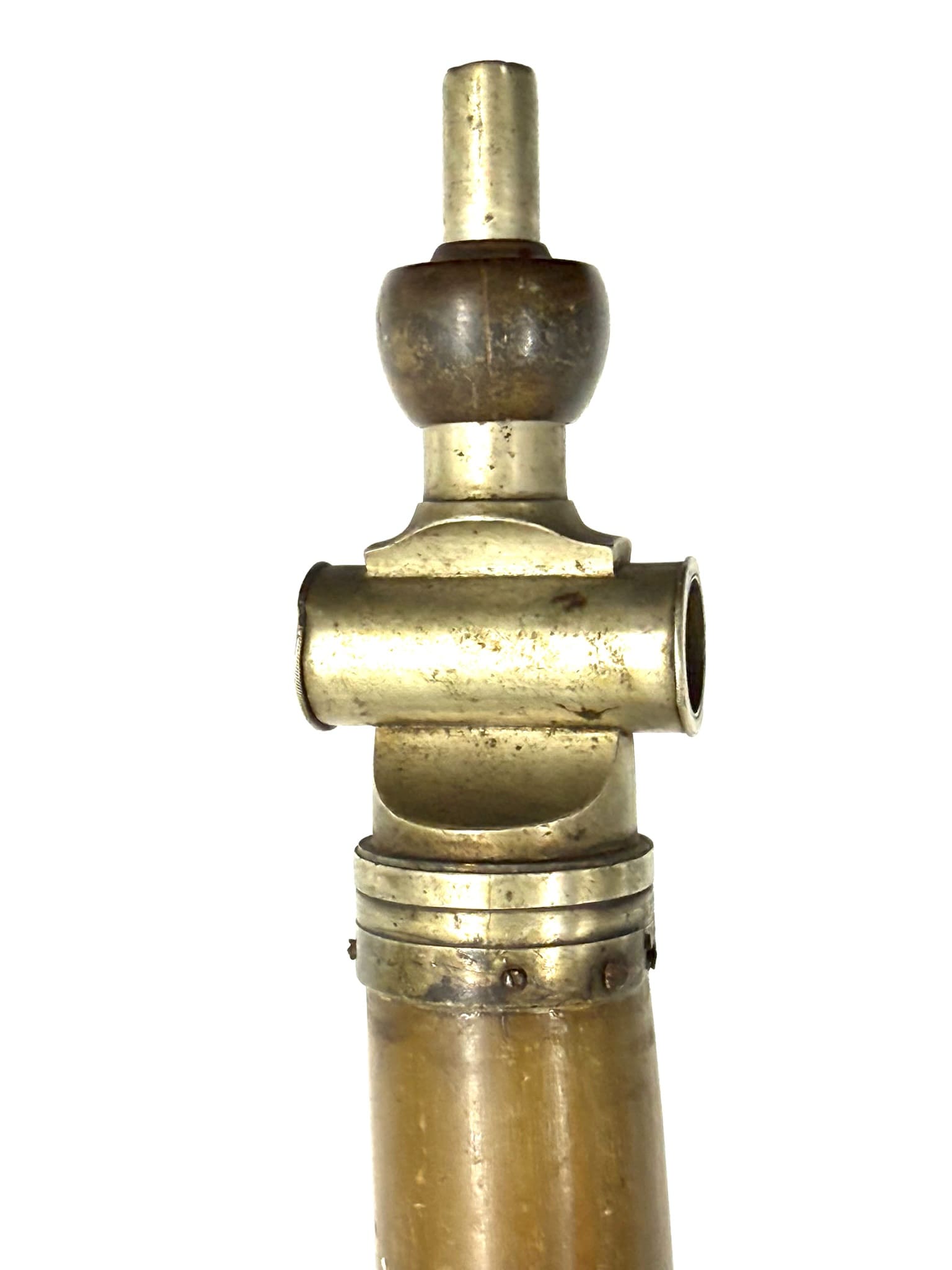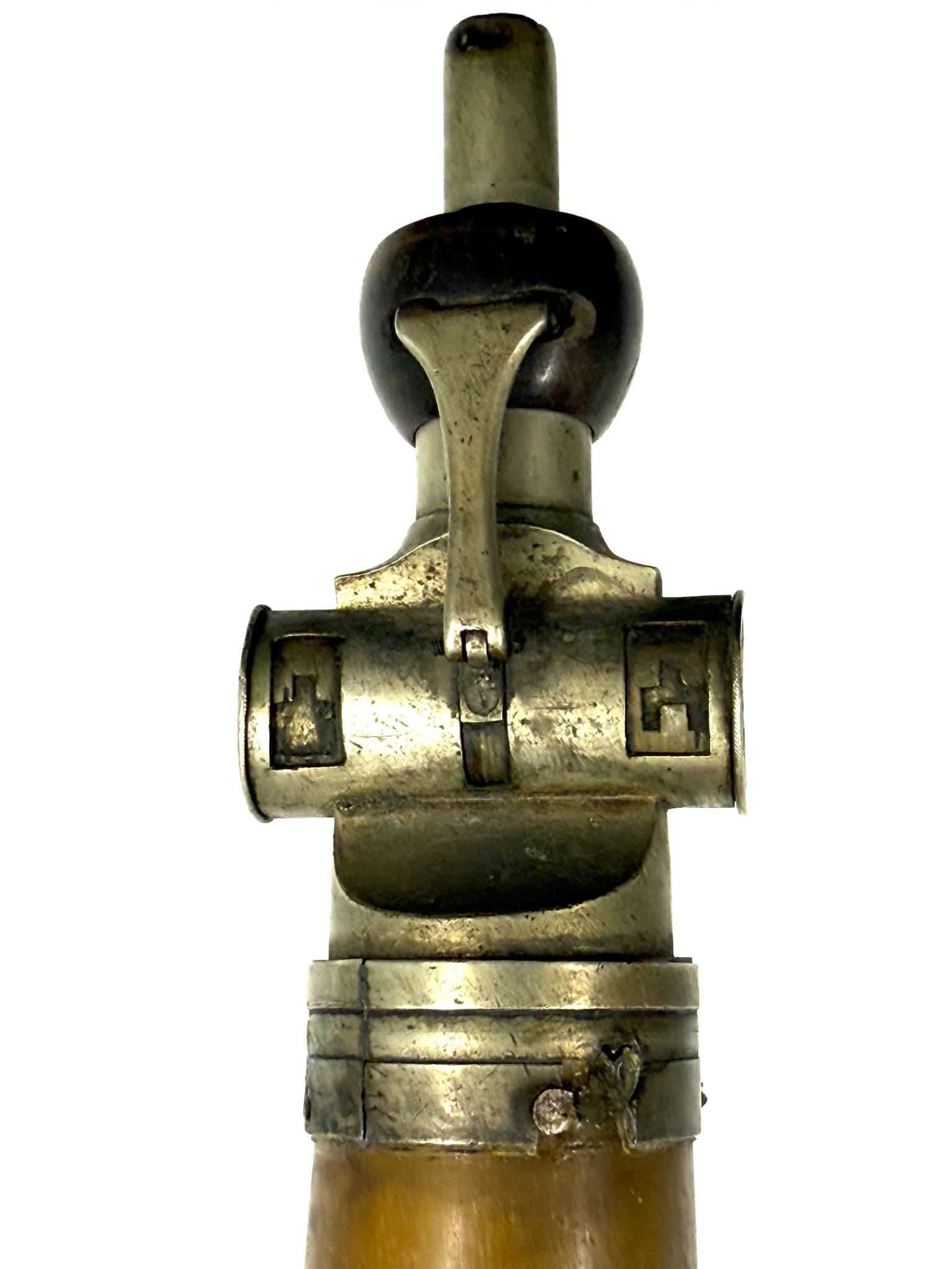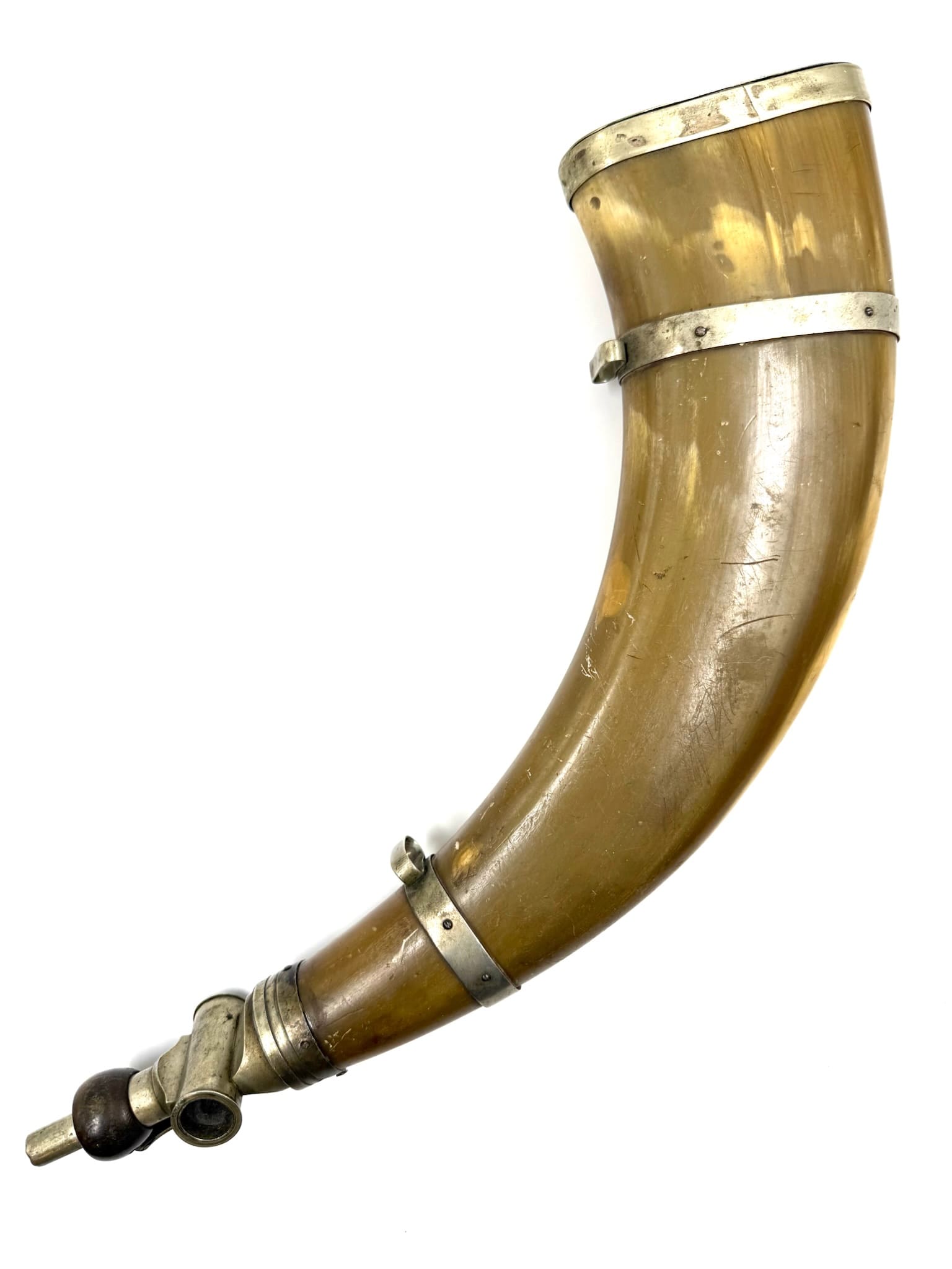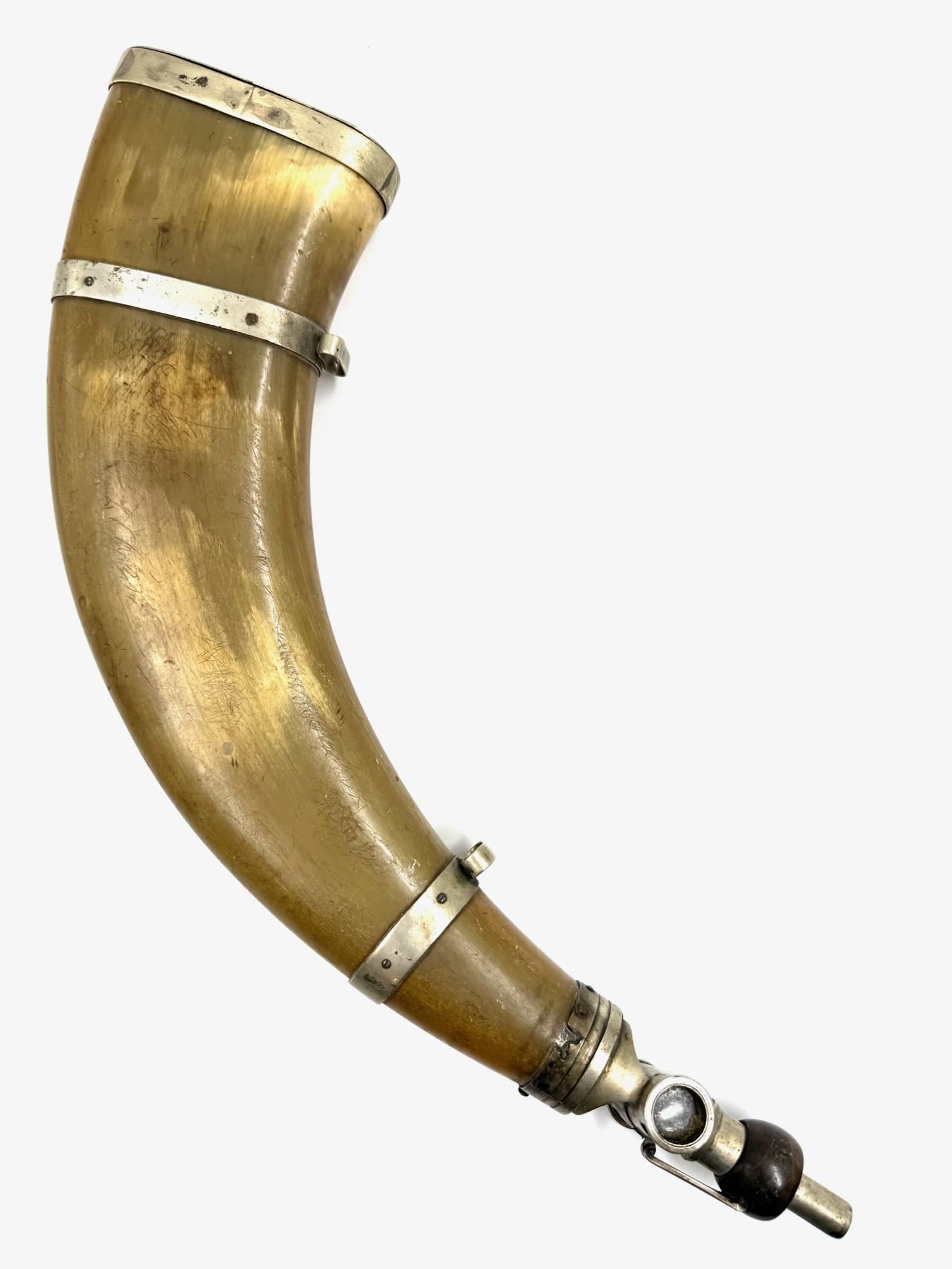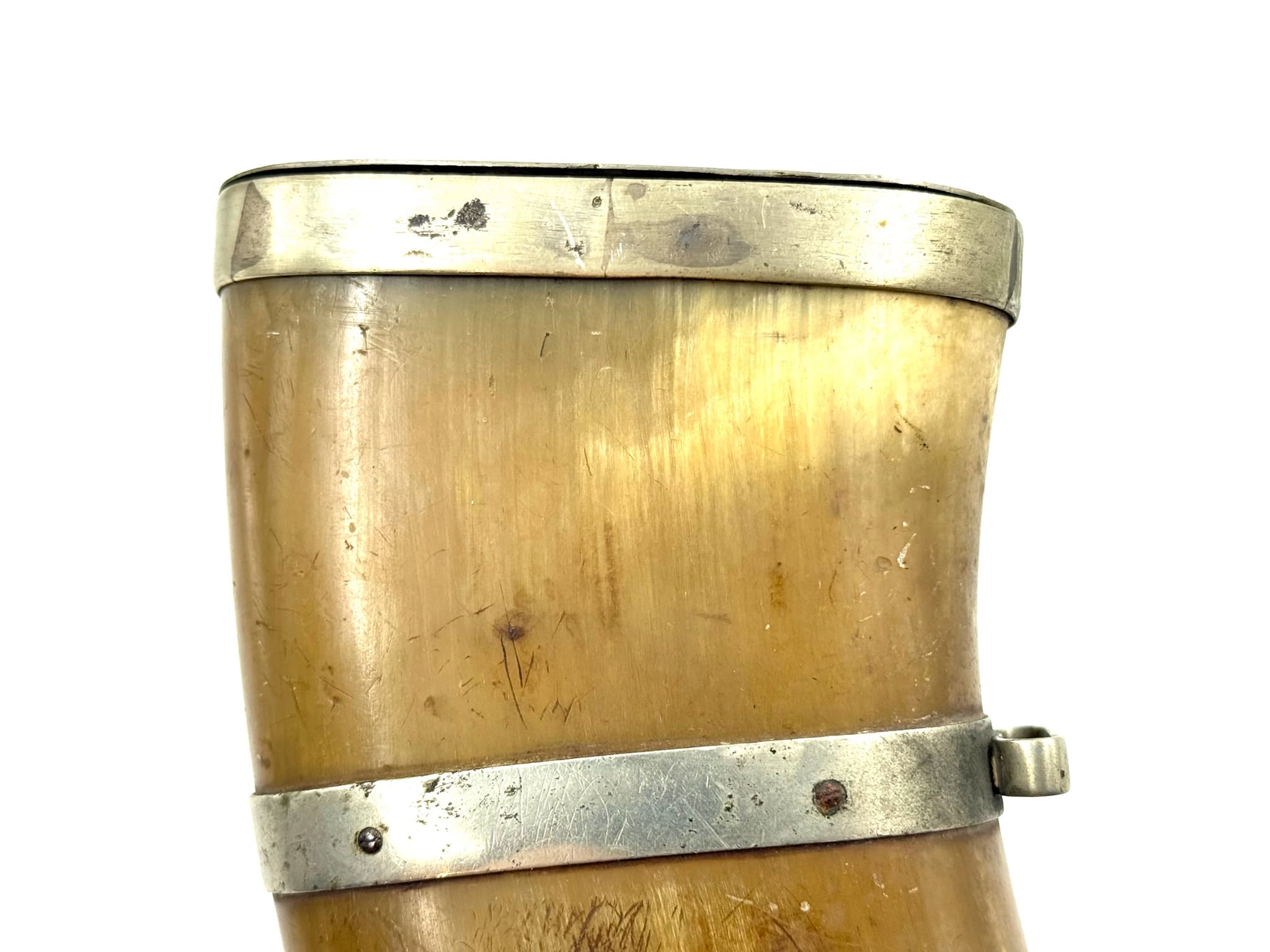 Μεγάλη κυρτή μπαρουτθήκη από κέρατο με μεταλλικά στοιχεία.