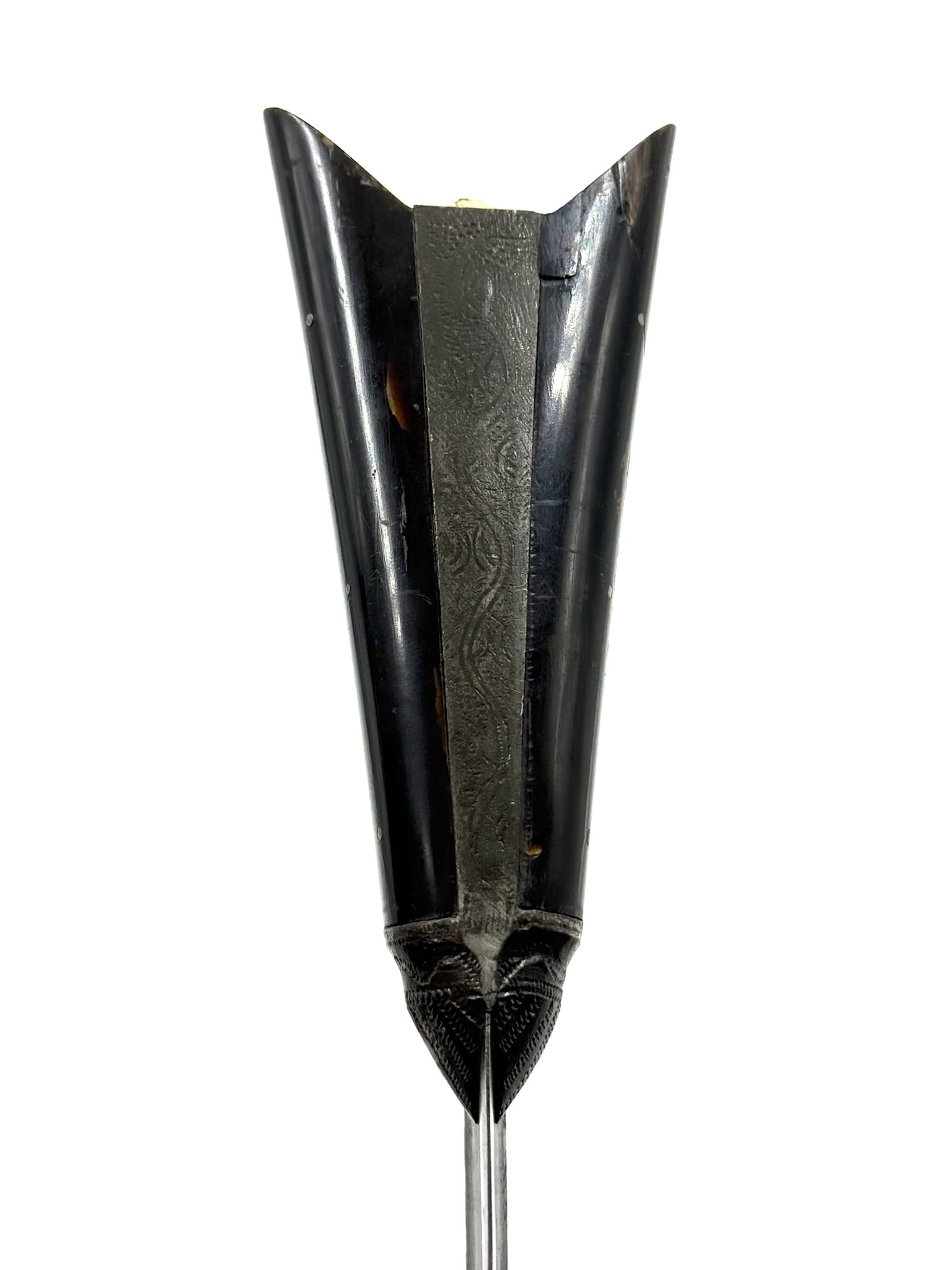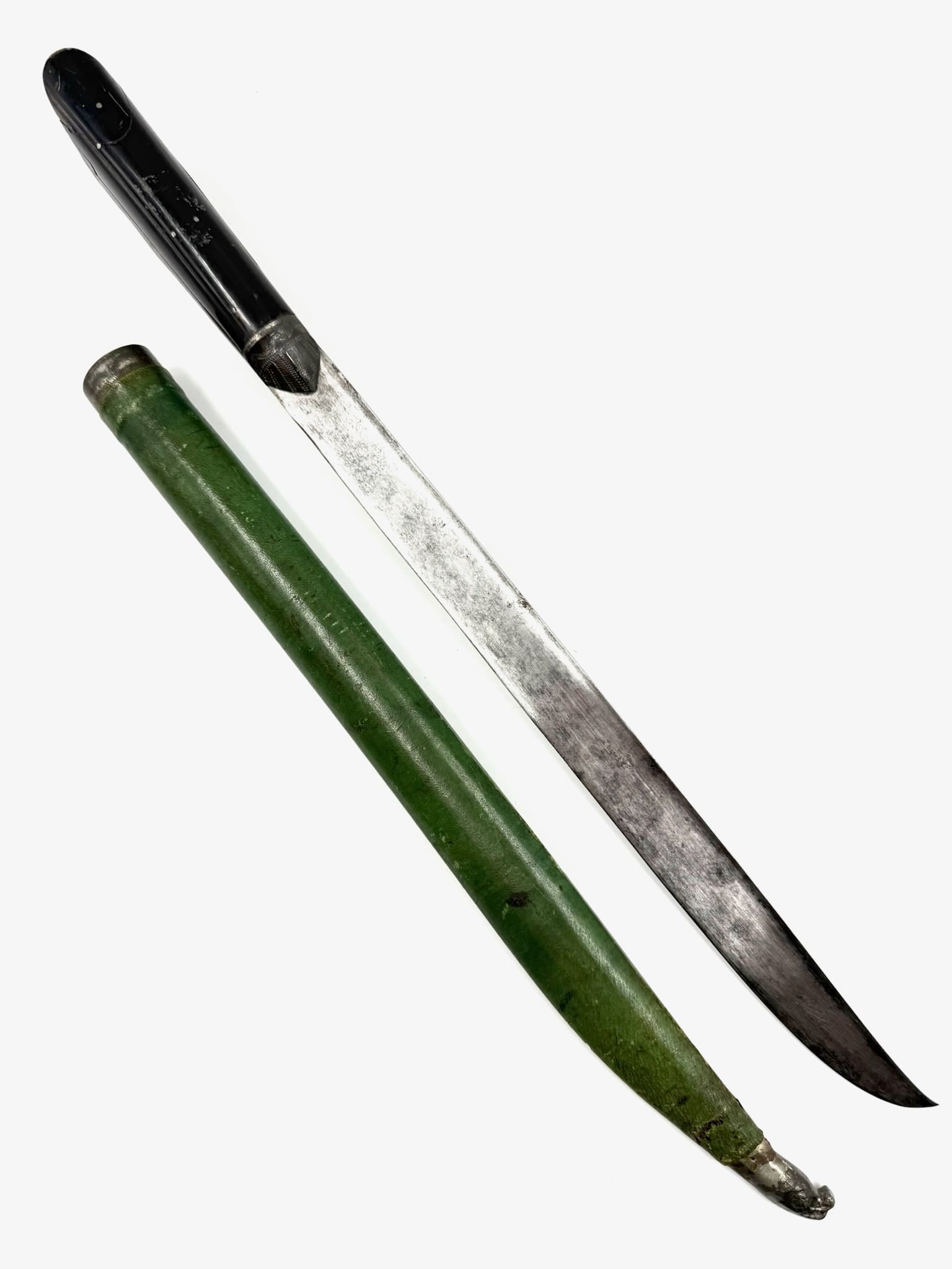 Κρητικό μαχαίρι με δερμάτινη θήκη και κεράτινη λαβή.