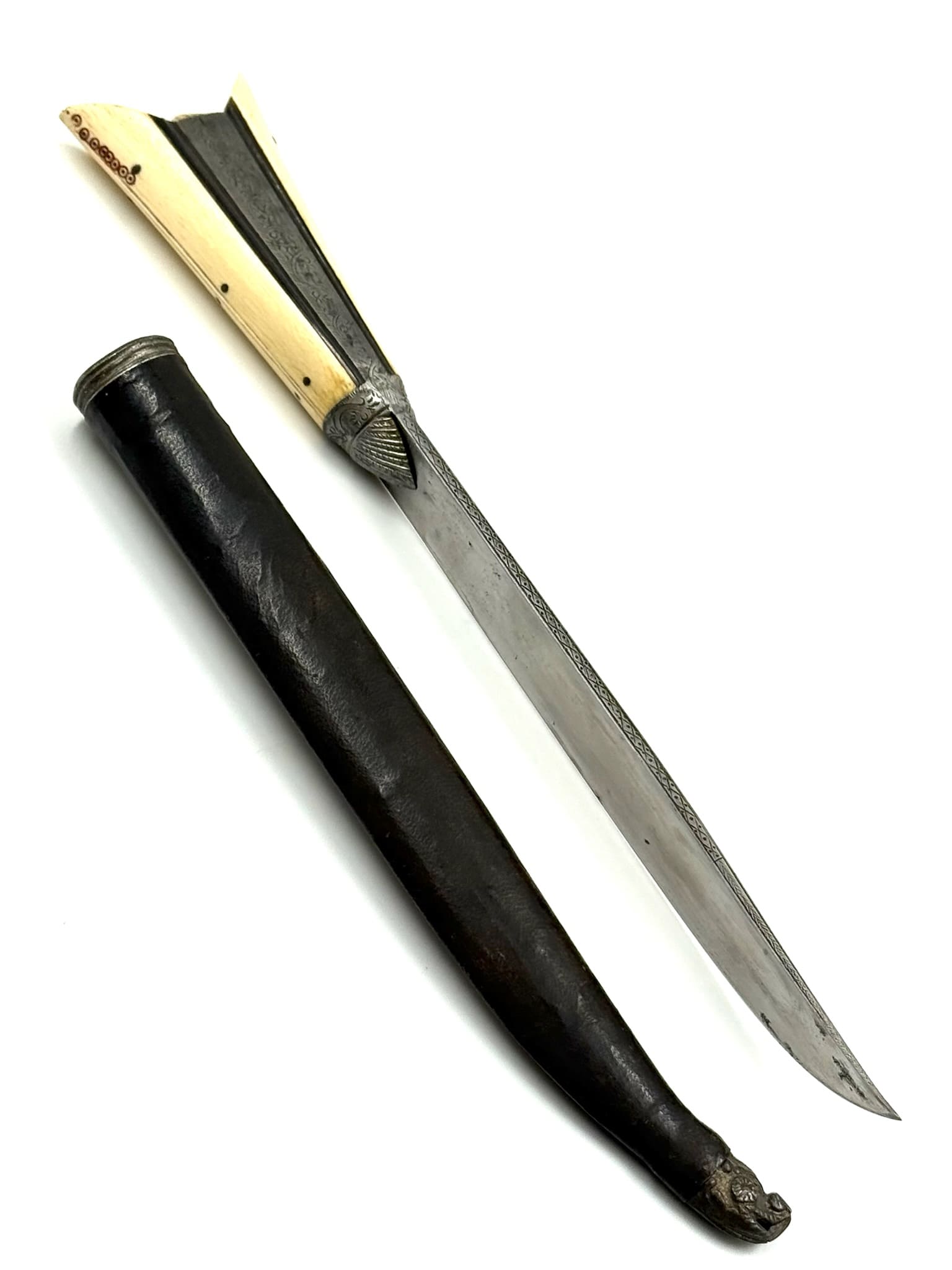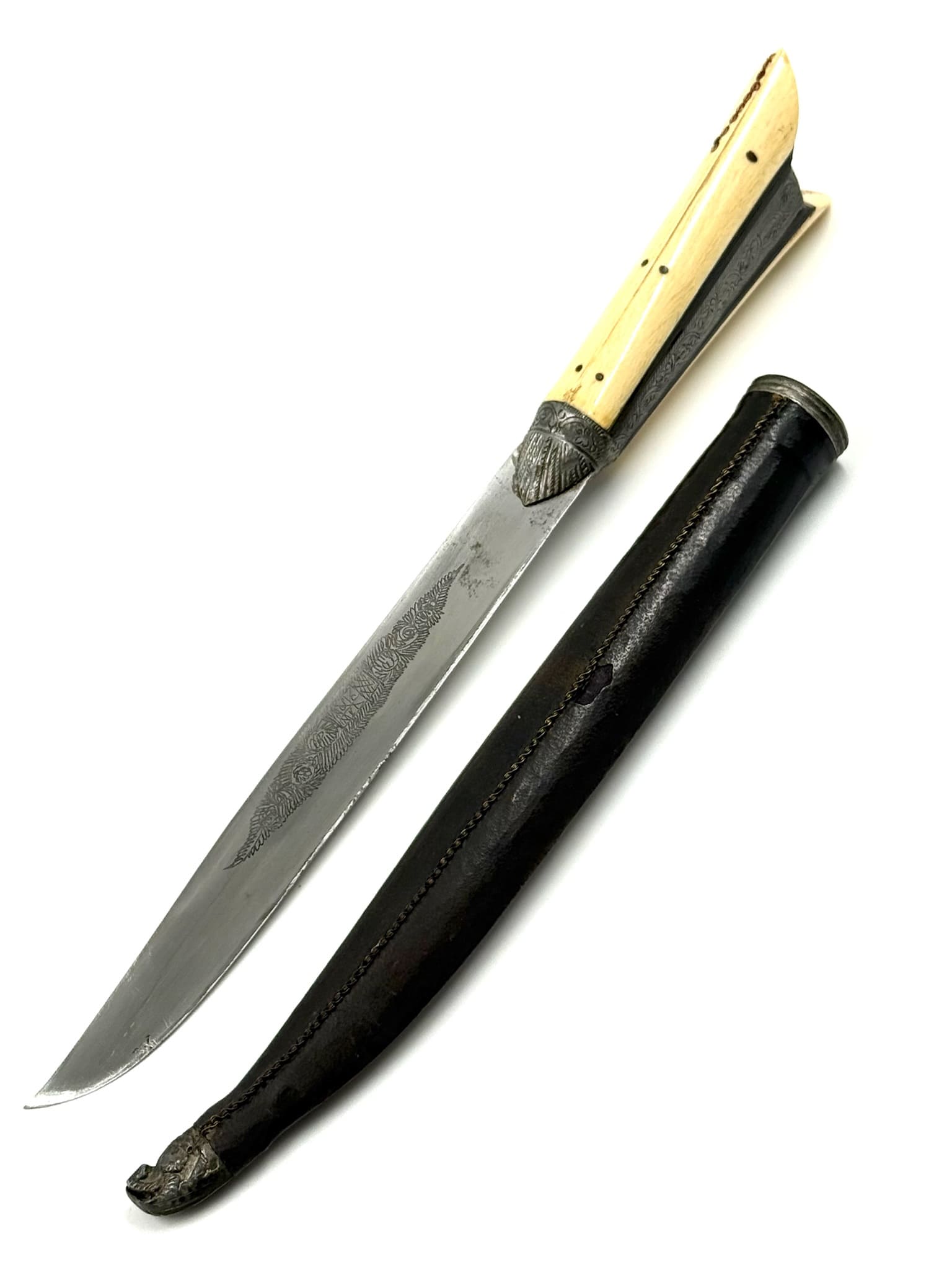 Κρητικό μαχαίρι με μαύρη δερμάτινη θήκη.