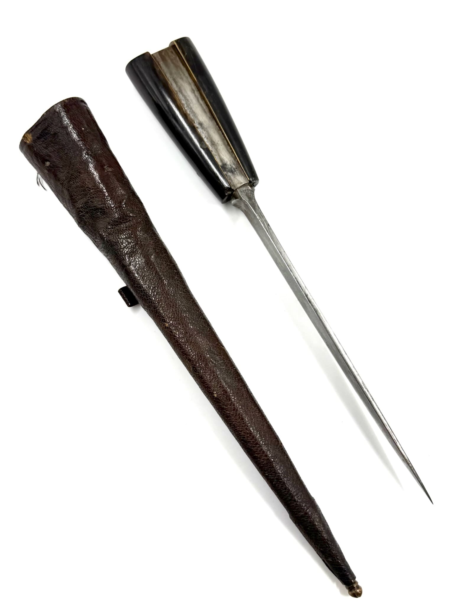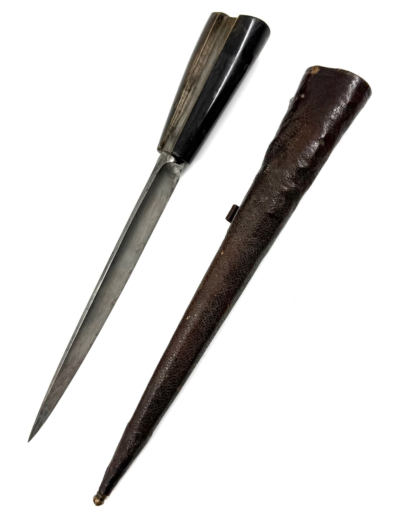 Μαχαίρι με κεράτινη λαβή και δερμάτινη θήκη.