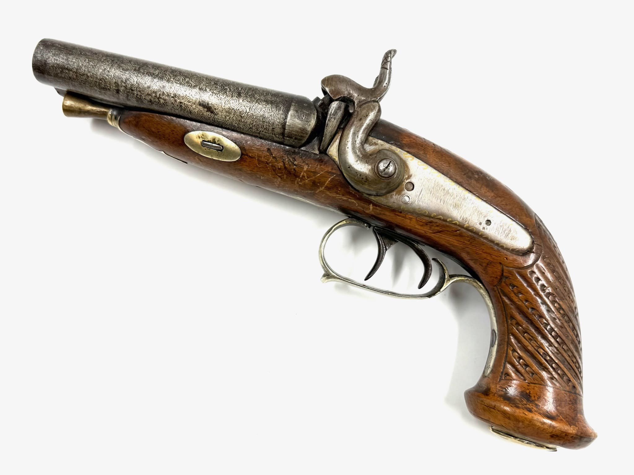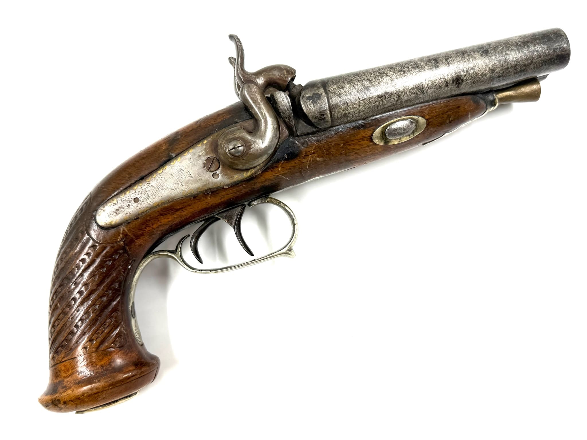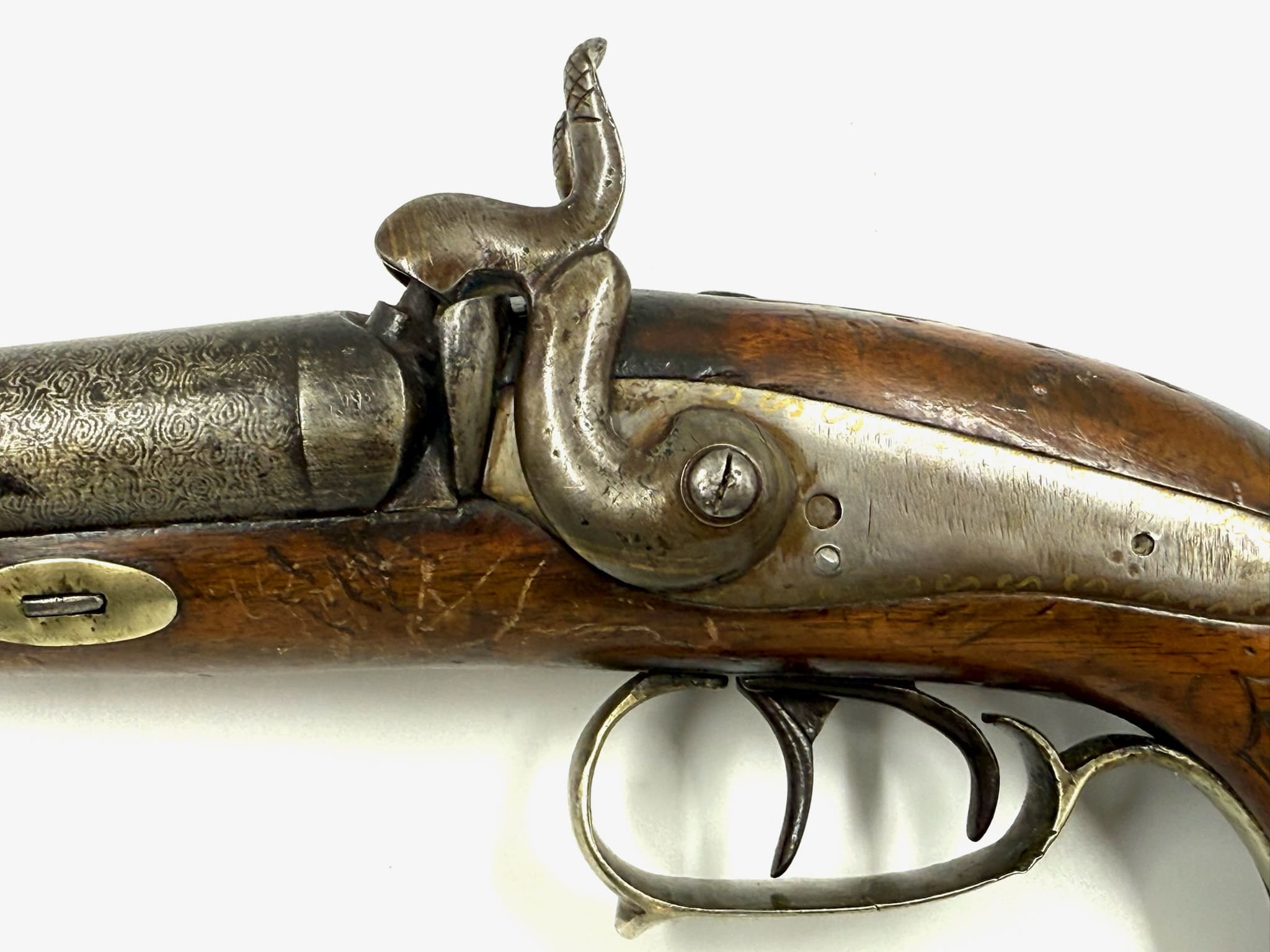 Ξύλινη πιστόλα διπλή πλαγιοκάννη (Σαρμας) με καψύλιο.