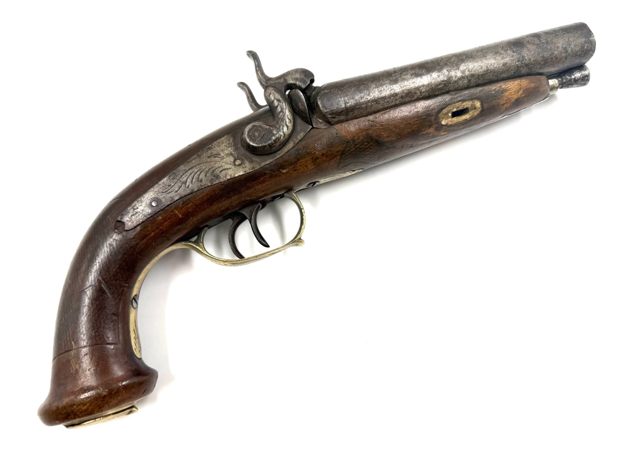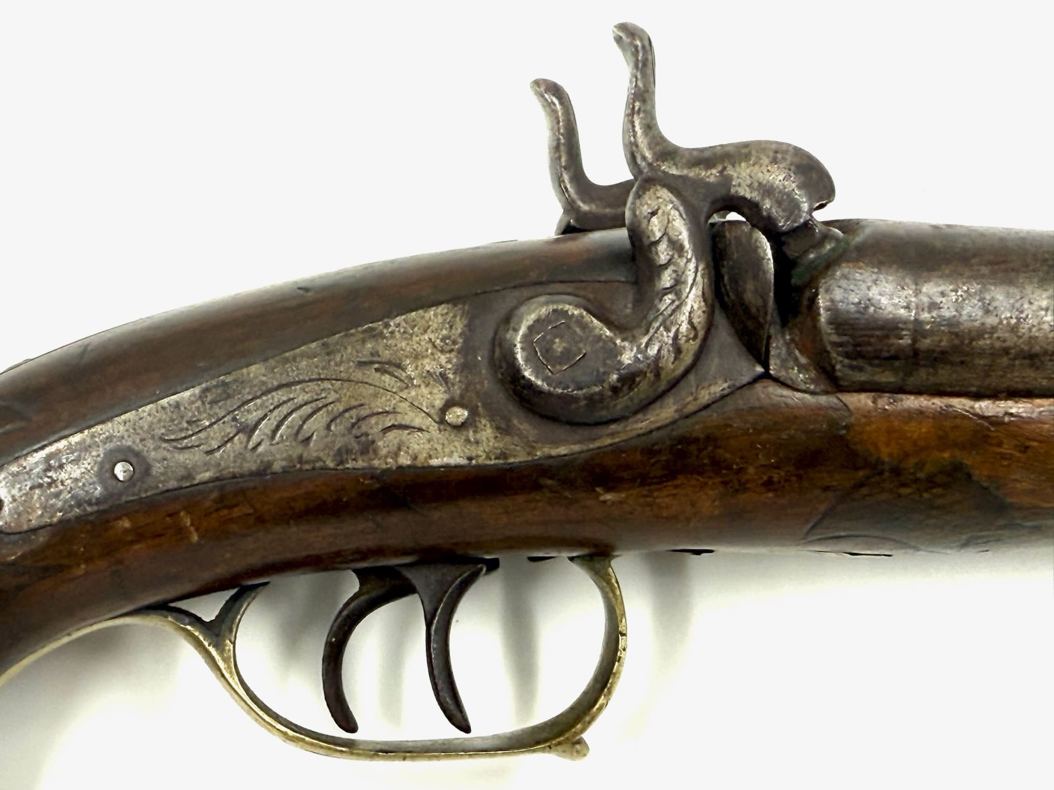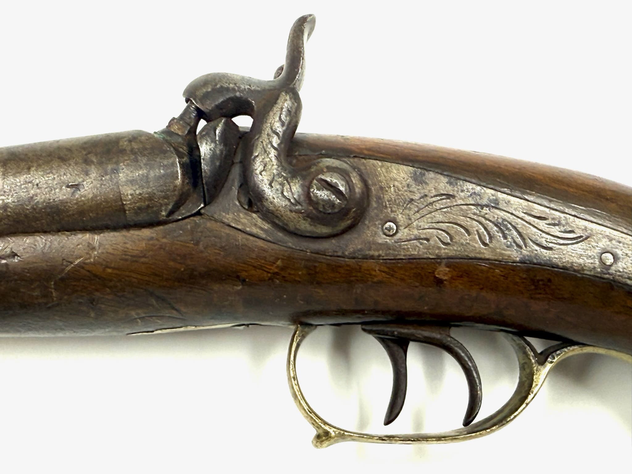 Ξύλινη πιστόλα διπλή πλαγιοκάννη με καψύλιο.