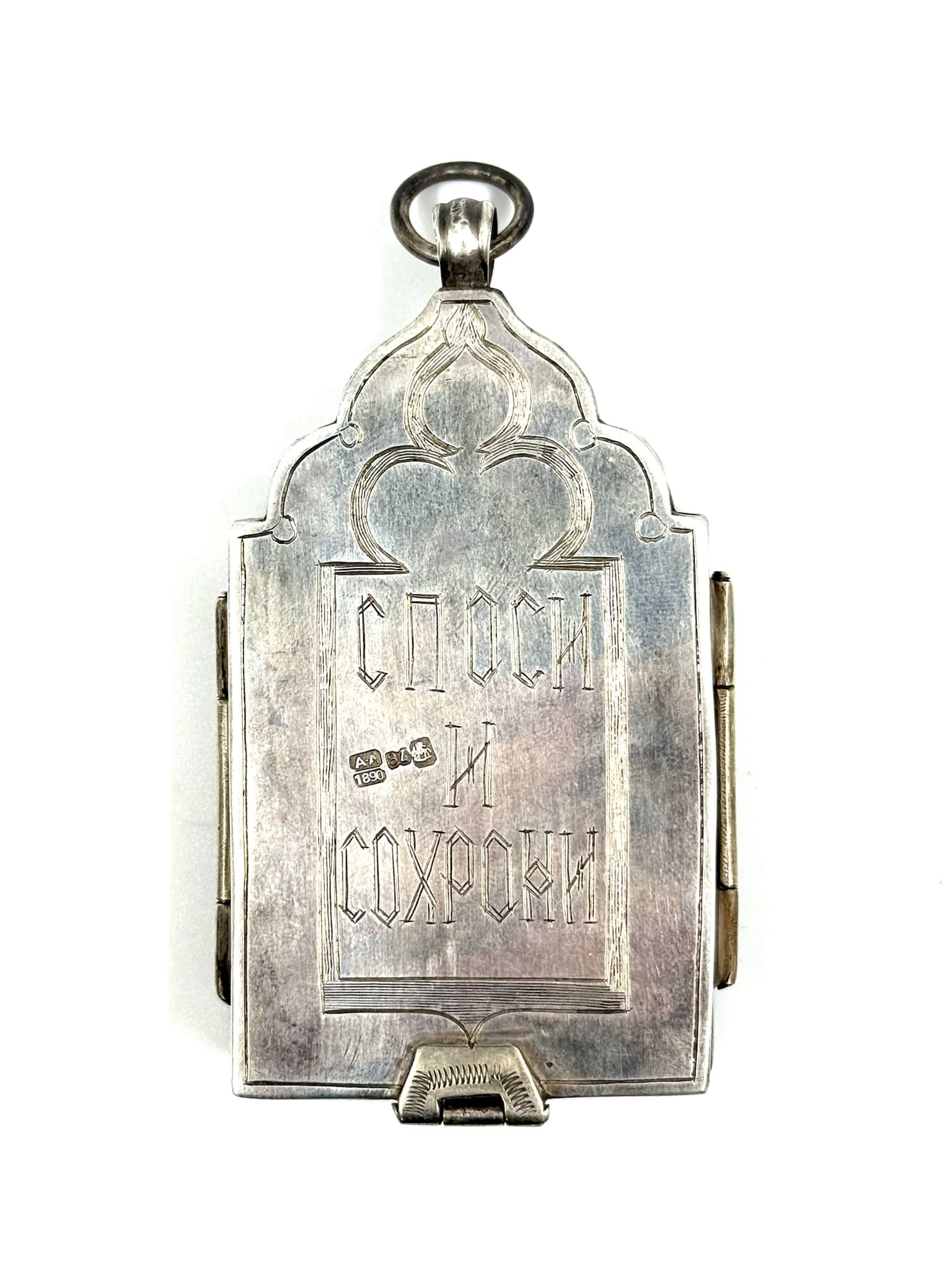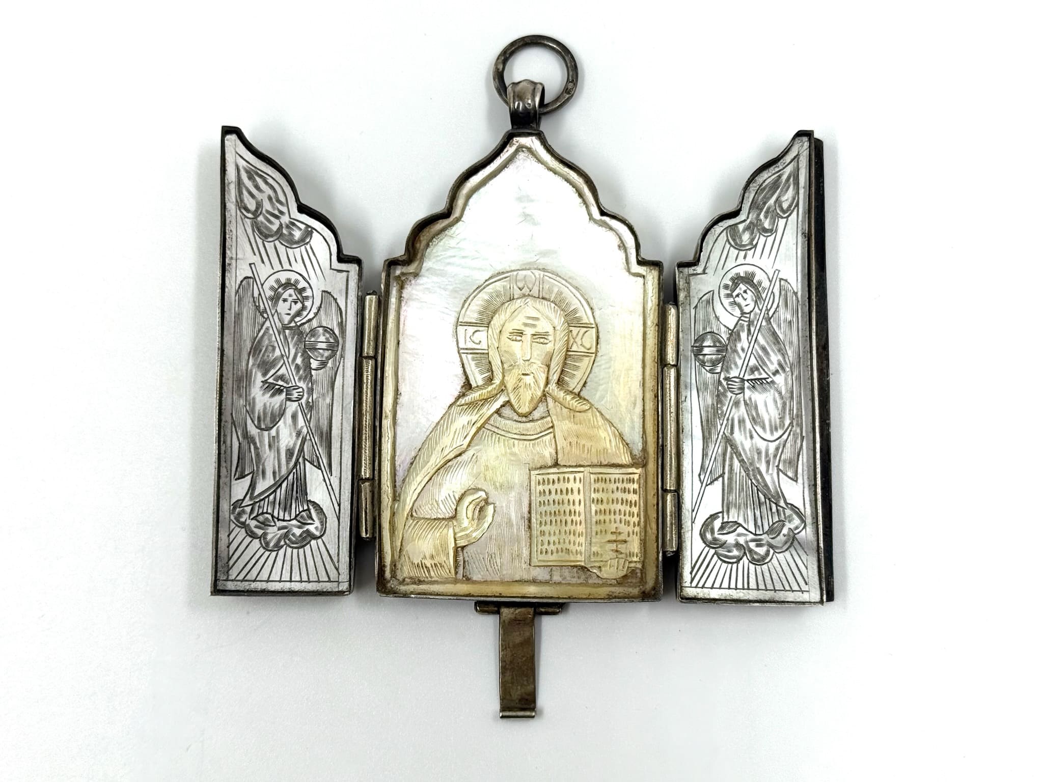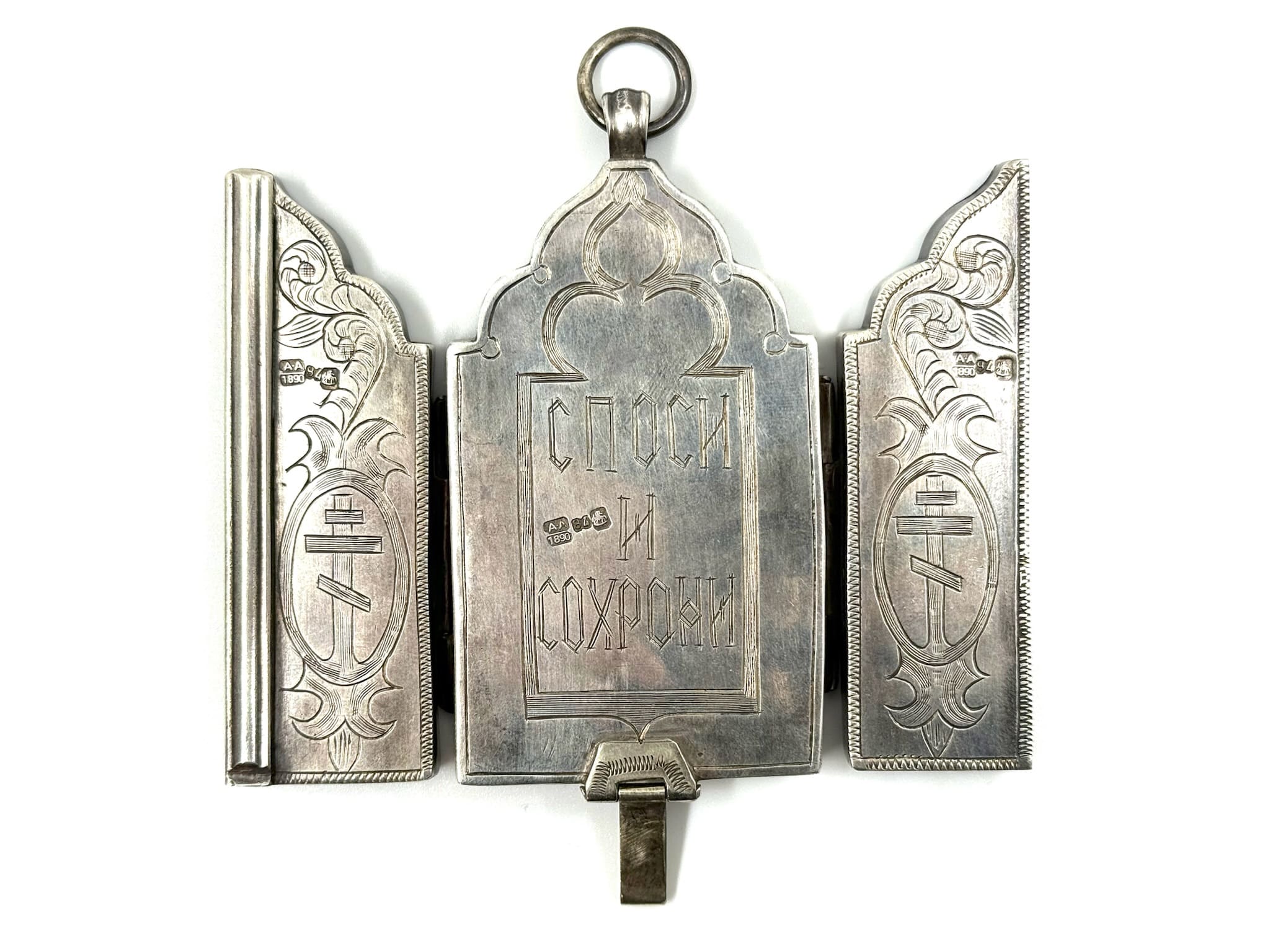Ασημένιο Ρωσικό τρίπτυχο φυλαχτό με φίλντισι.